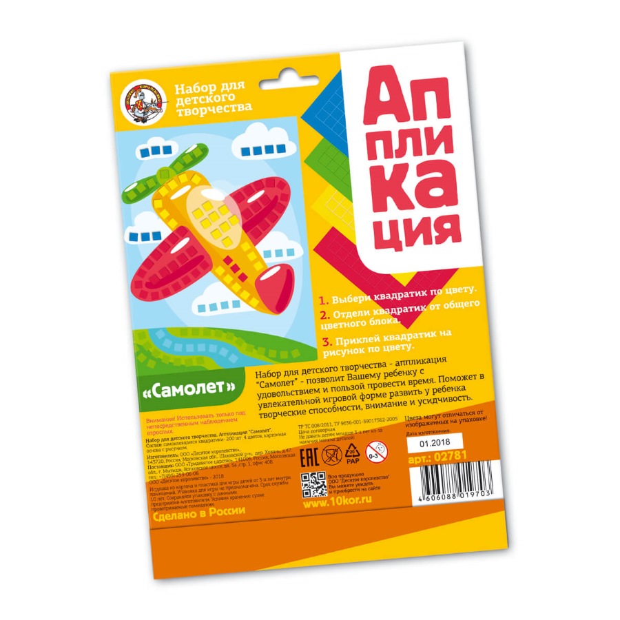 Набор для творчества. Аппликация «Самолет» (4 цв, 200 эл)