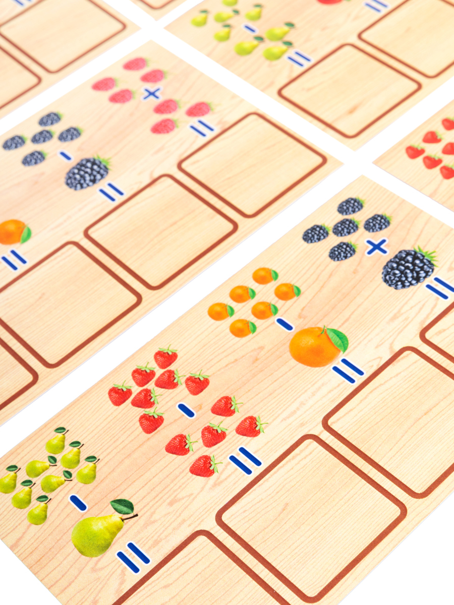 Если играть компанией, то раздаются карточки с примерами. На столе раскладываются фишки цифрами вниз. Ведущий по очереди открывает фишку с цифрой. Чтобы понять, подходит ли игроку данная фишка, он должен решить пример на карточке или, чтобы было легче, пересчитать изображённые ягоды. Игрок, который раньше остальных закрыл все свободные окна на карточке, а значит, и решил все примеры на карточке правильно, выигрывает и получает звание «Юный математик».