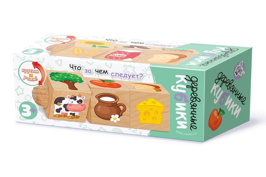 Кубики деревянные на оси "Что за чем следует?" (3 кубика) Вместе с этим товаром покупают: