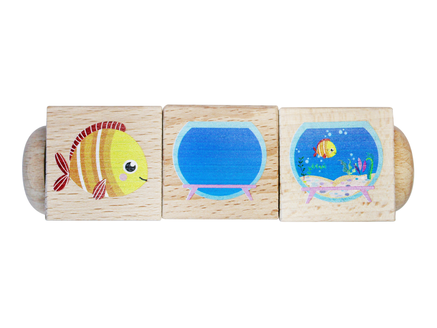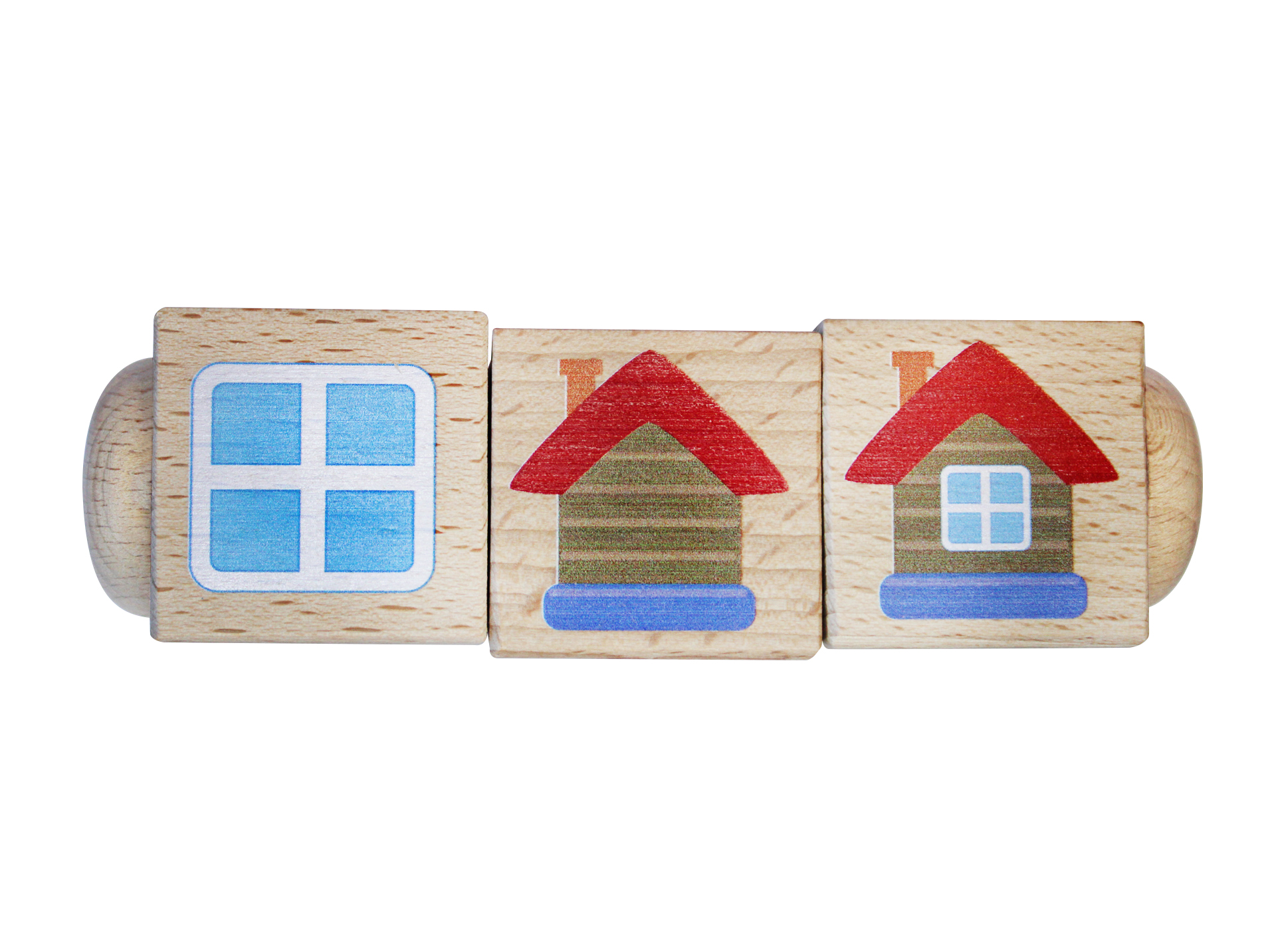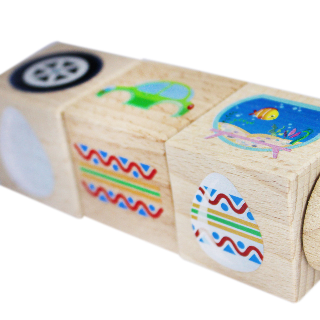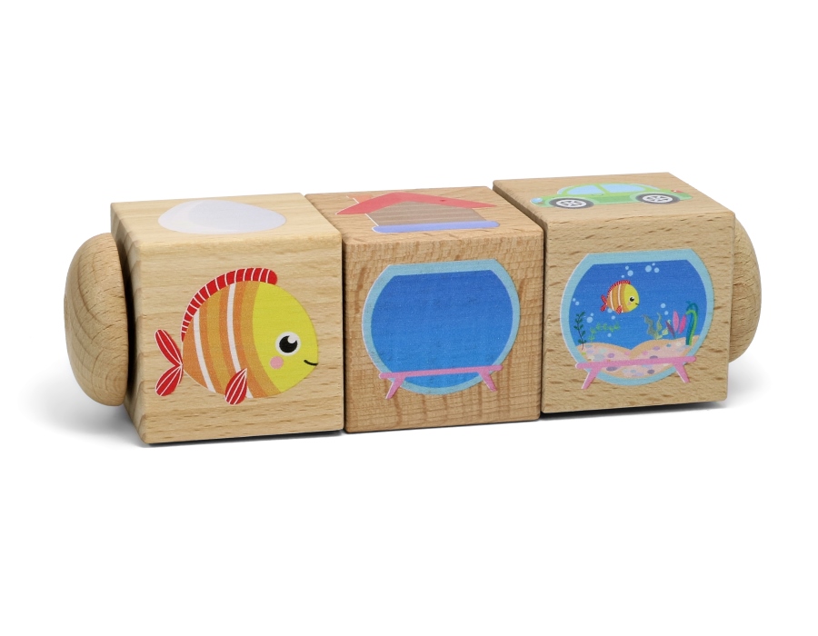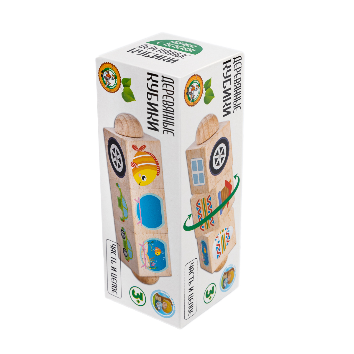 Развивающие деревянные кубики на оси «Часть и целое» (3 кубика)