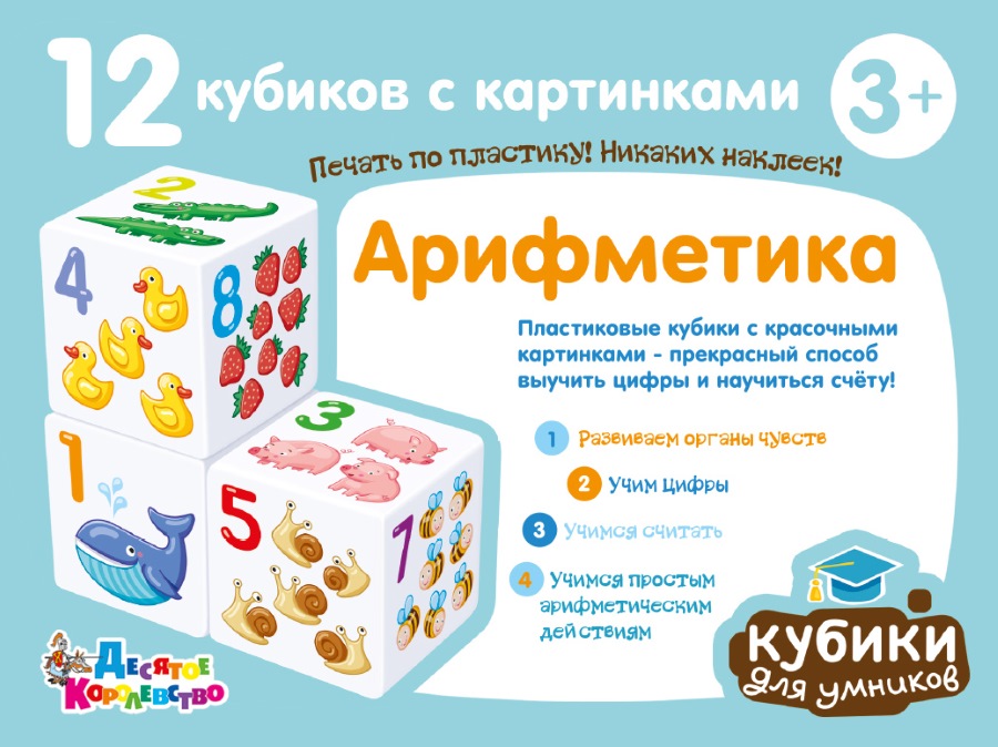 Развивающие кубики для умников «Арифметика» (12 штук)