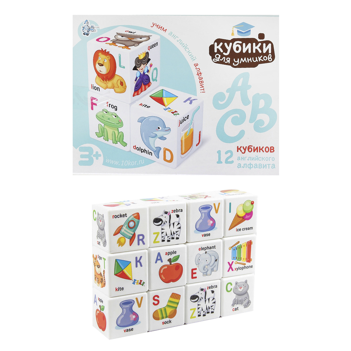Кубики пластмассовые "Кубики для умников. Английский алфавит" 12 шт Заказать в 1 клик