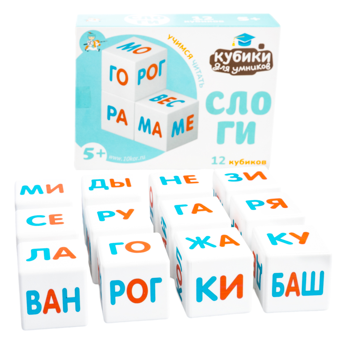 Развивающие кубики для умников «Учимся читать» (12 штук)