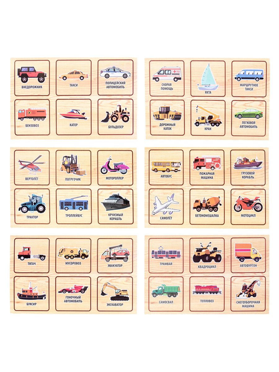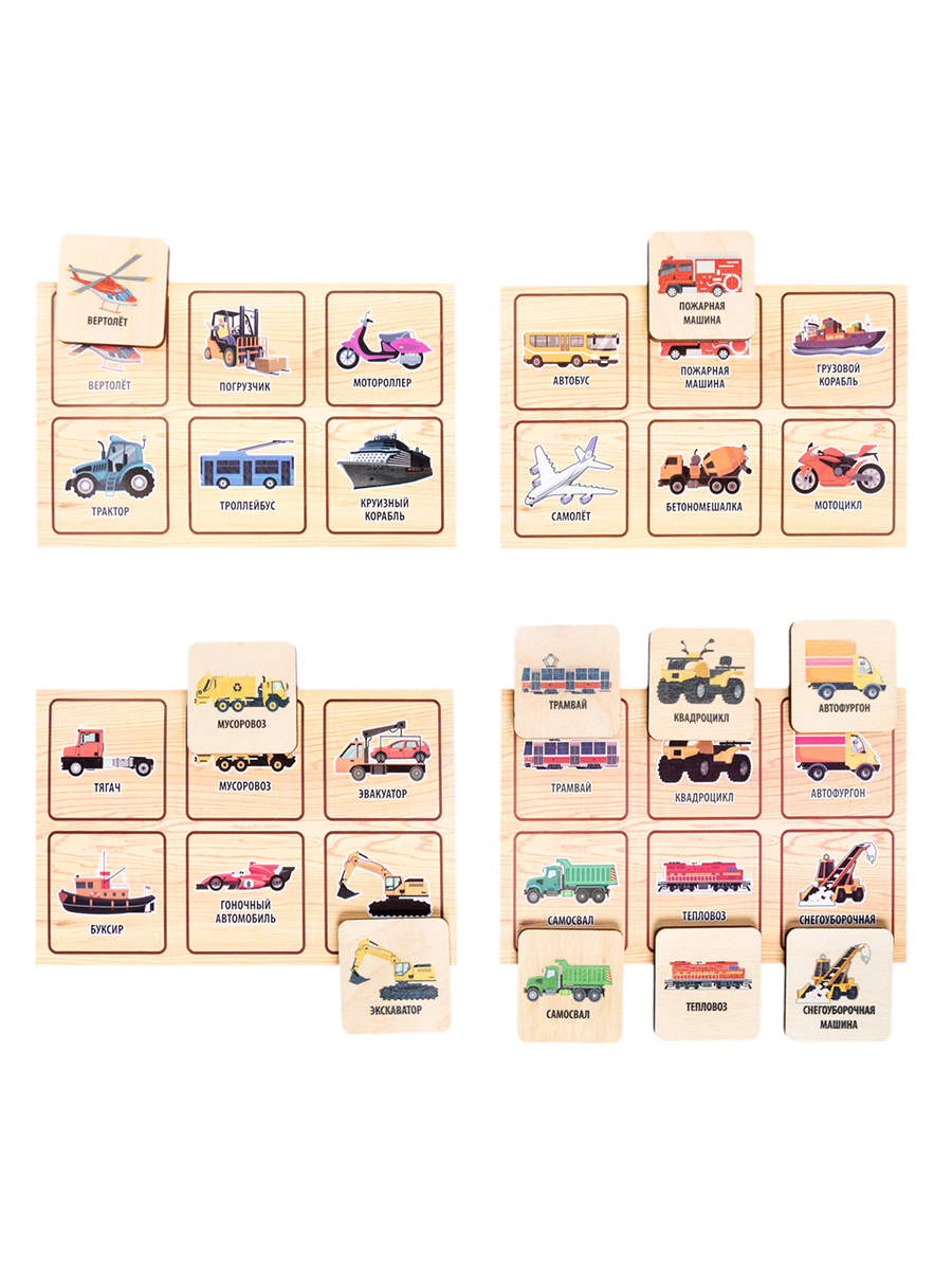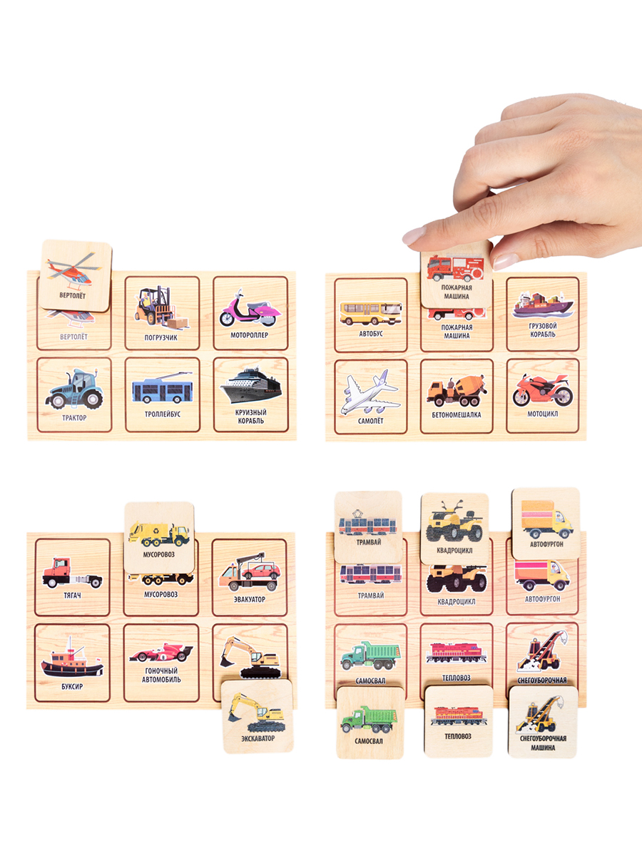 Лото деревянное «Транспорт» развивает кругозор, внимательность и усидчивость.