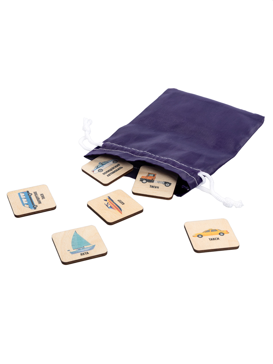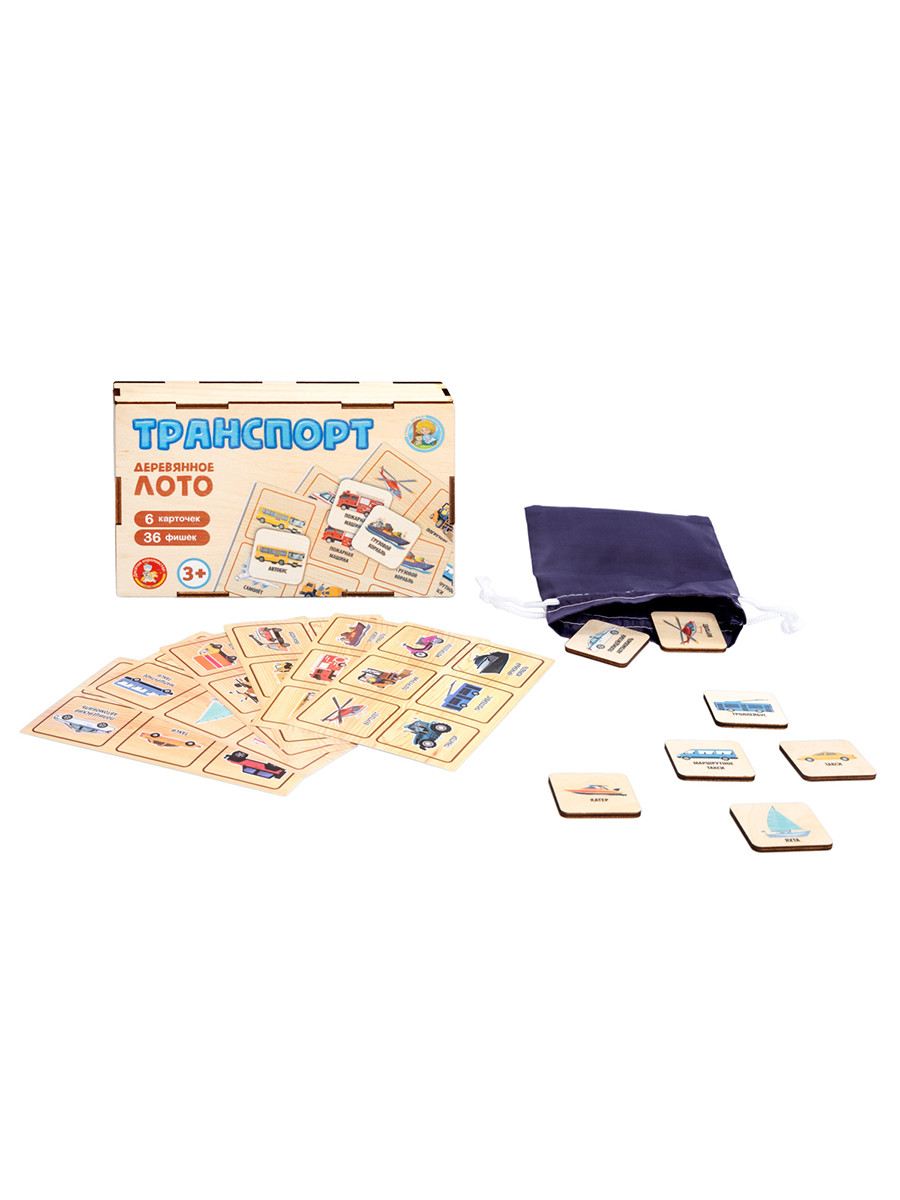 Лото с деревянными фишками "Транспорт" в деревянной коробке