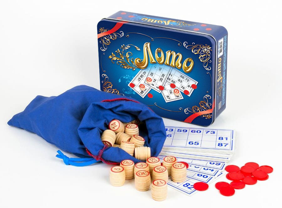 Настольная игра традиционное лото в жестяной коробке «Синий ларец» с деревянными бочонками
