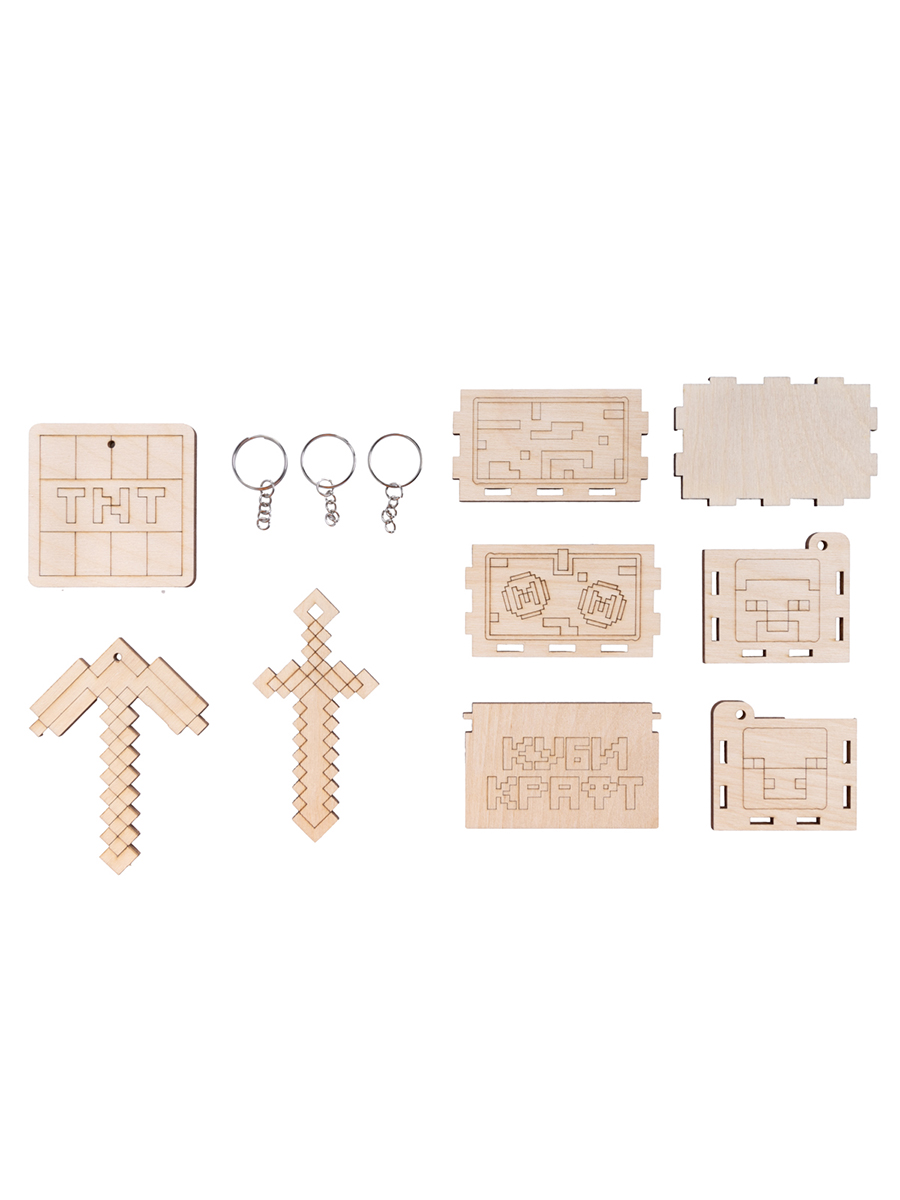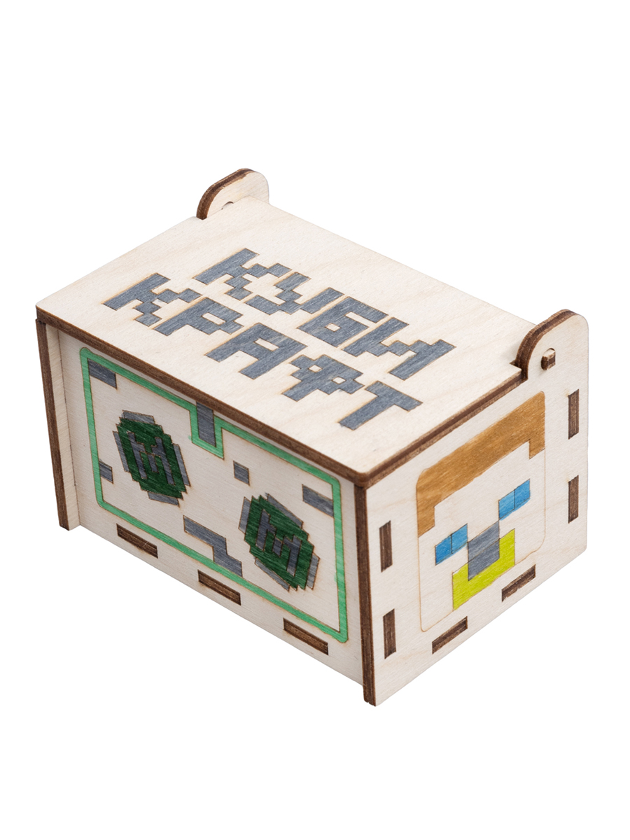 Два брелока, идущие в комплекте, ждут своего часа, чтобы стать уникальными "пиксельными" аксессуарами. Раскрасьте их, создайте свой дизайн и носите с гордостью! А чтобы все найденные богатства и созданные шедевры не потерялись, в наборе есть специальный сундучок — идеальное место для хранения сокровищ.