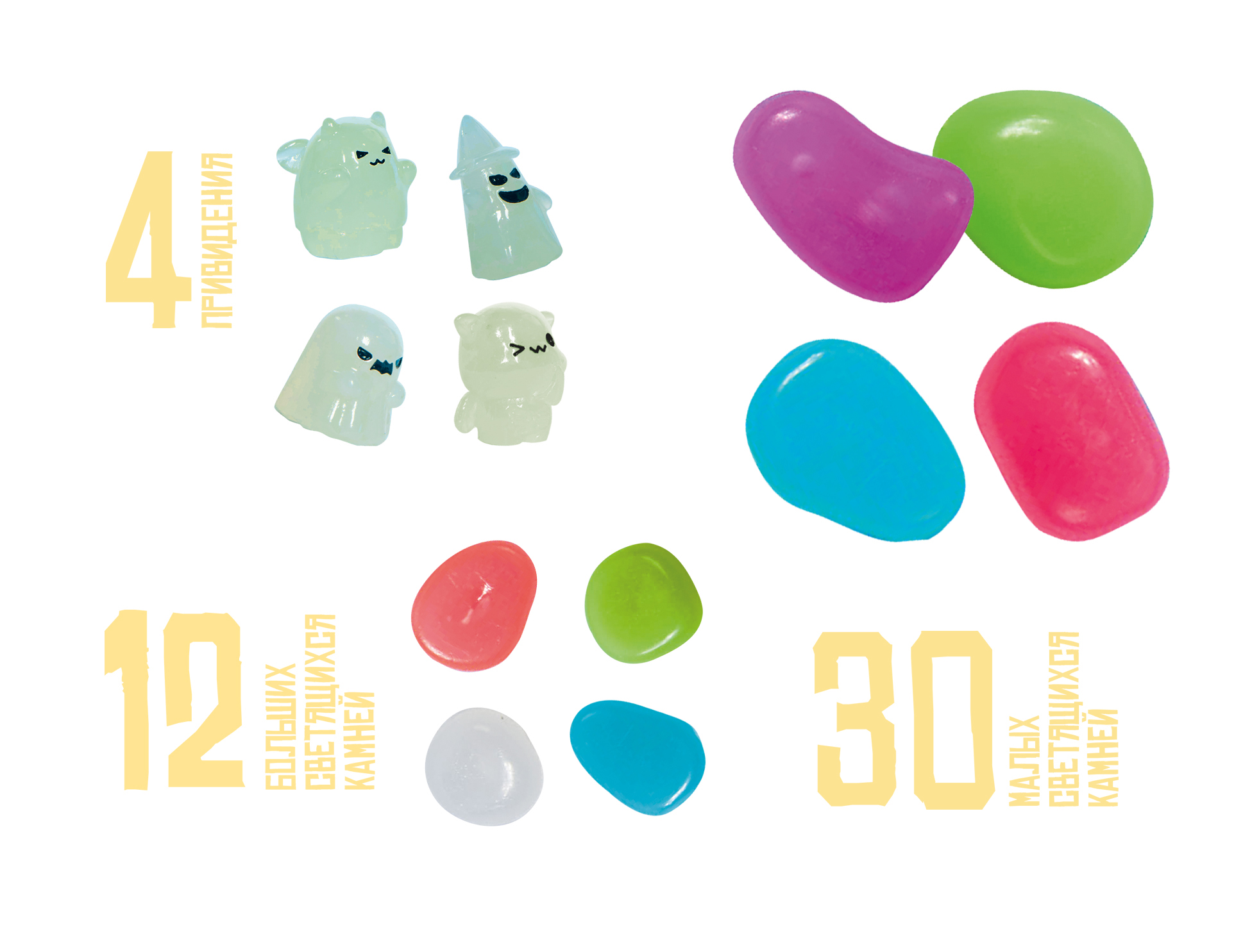 Набор для раскопок «Сокровища привидений» 4 приведения, 12 больших и 30 малых (светятся в темноте)