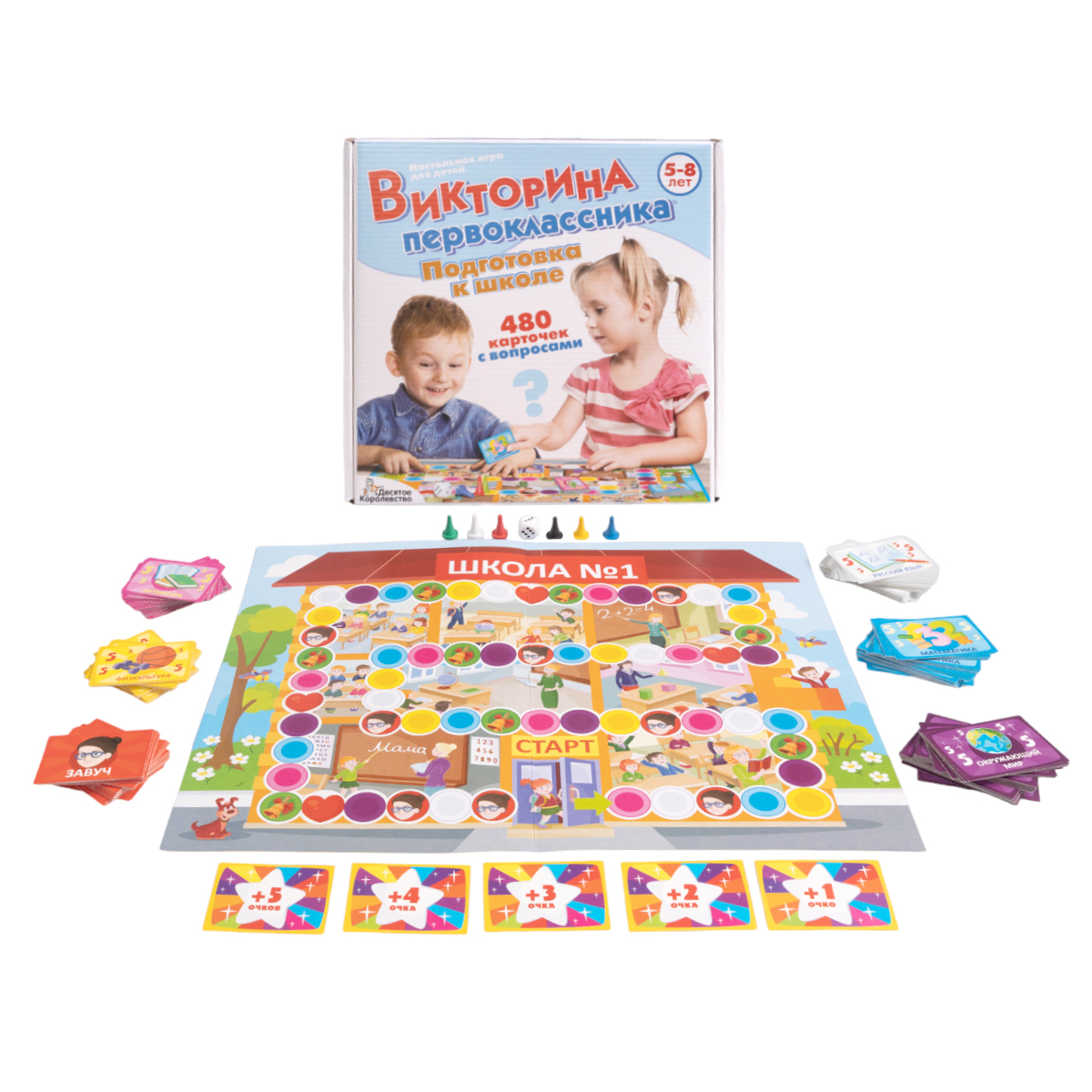 «Викторина первоклассника. Подготовка к школе» – это увлекательная настольная игра-викторина для дошкольников, с помощью которой в игровой форме можно подготовить ребёнка к школе и проверить его знания по основным школьным предметам.