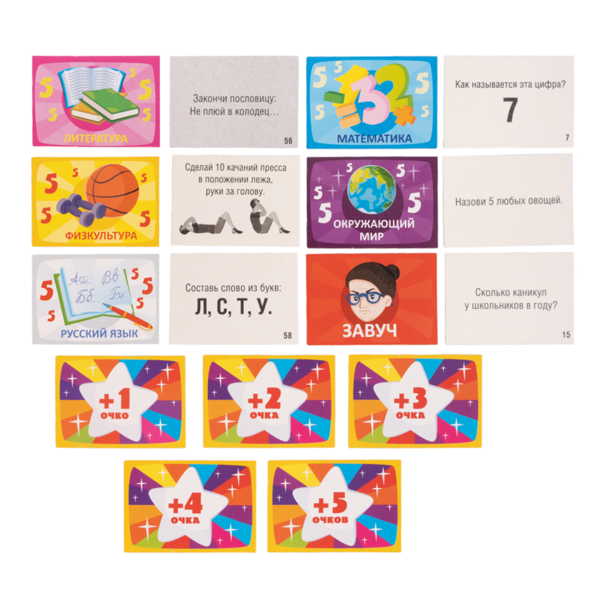 Цель каждого игрока – вернуться на старт, получив как можно больше пятёрок по разным предметам.