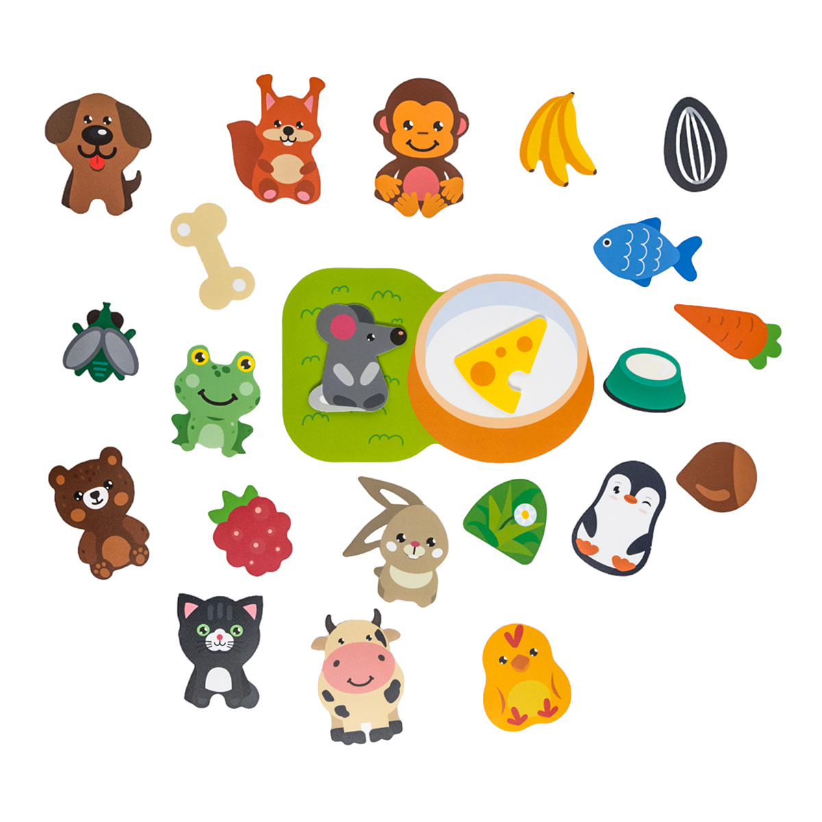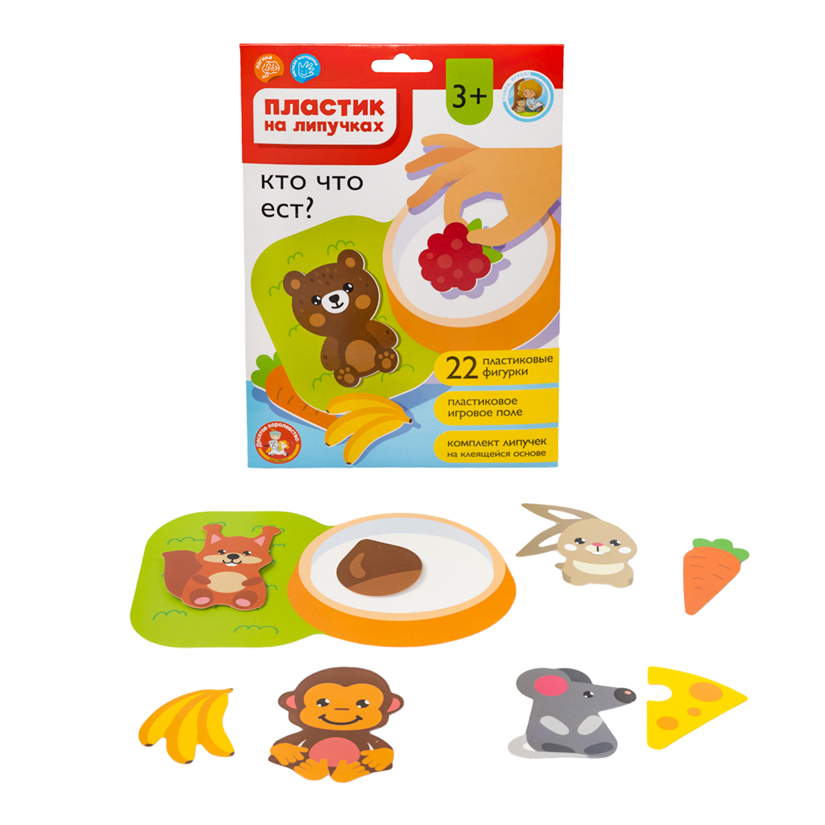 С развивающей игрой Пластик на липучках «Кто что ест?» дети в игровой форме познакомятся с различными животными и узнают, что они предпочитают на обед.Состав игры: