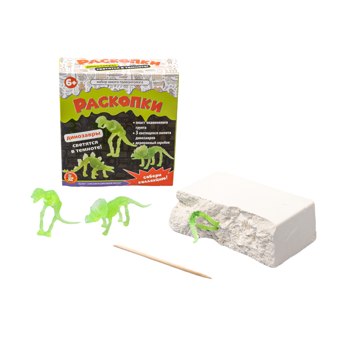 Раскопки для детей «Набор юного палеонтолога» (3 динозавра, светятся в темноте)