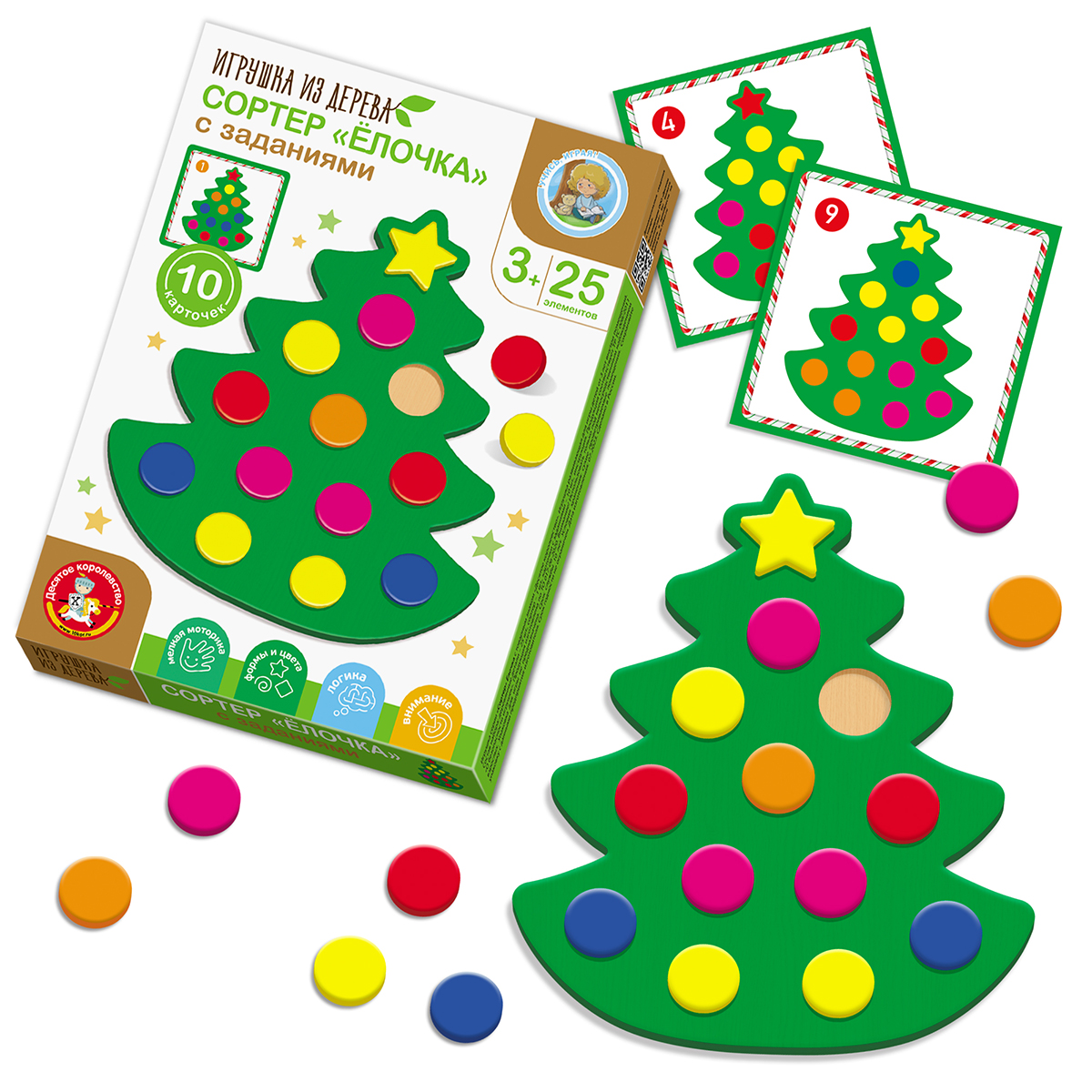 Развивающая игра для детей «Ёлочка» сортер с заданиями
