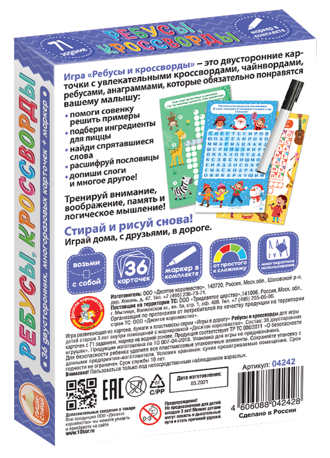 Развивающая игра Пиши-Стирай «Ребусы, кроссворды»