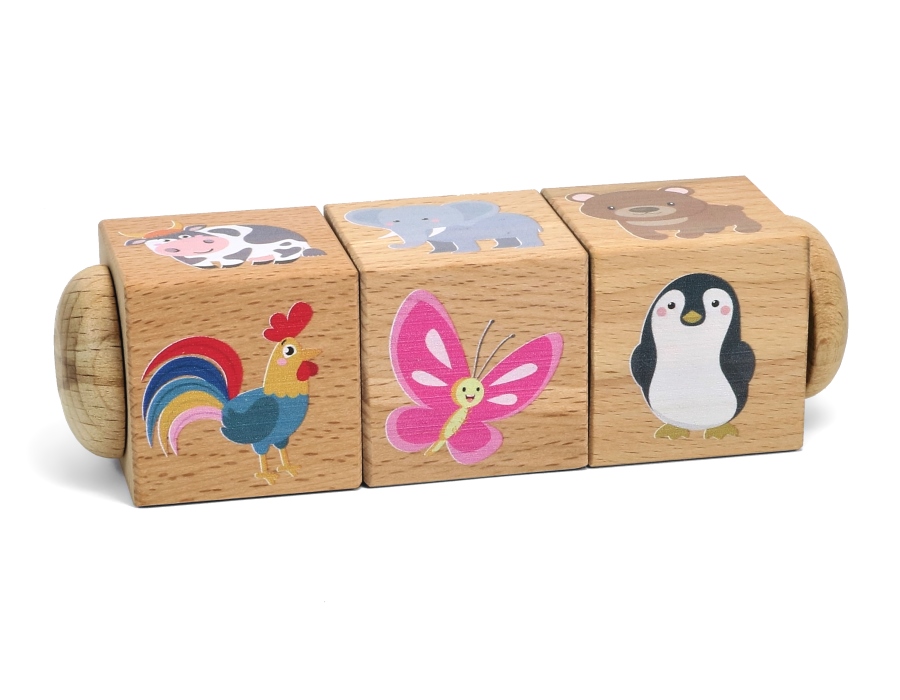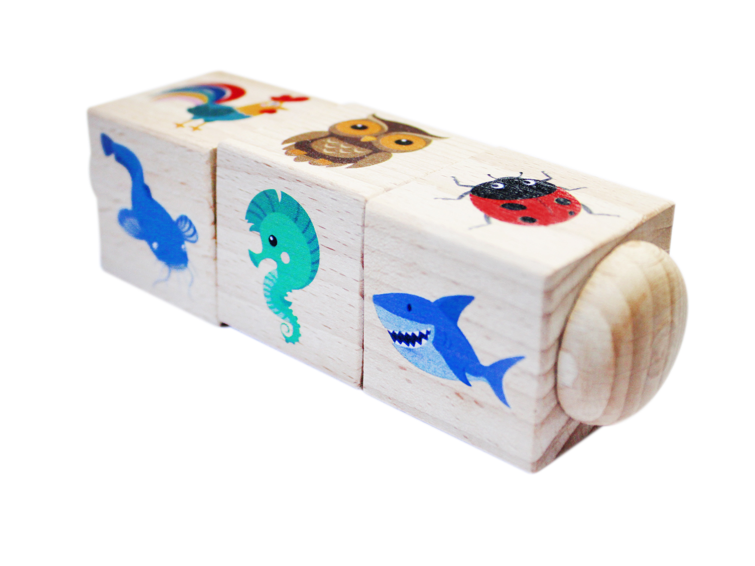 Развивающие деревянные кубики на оси «Живая природа» (3 кубика)