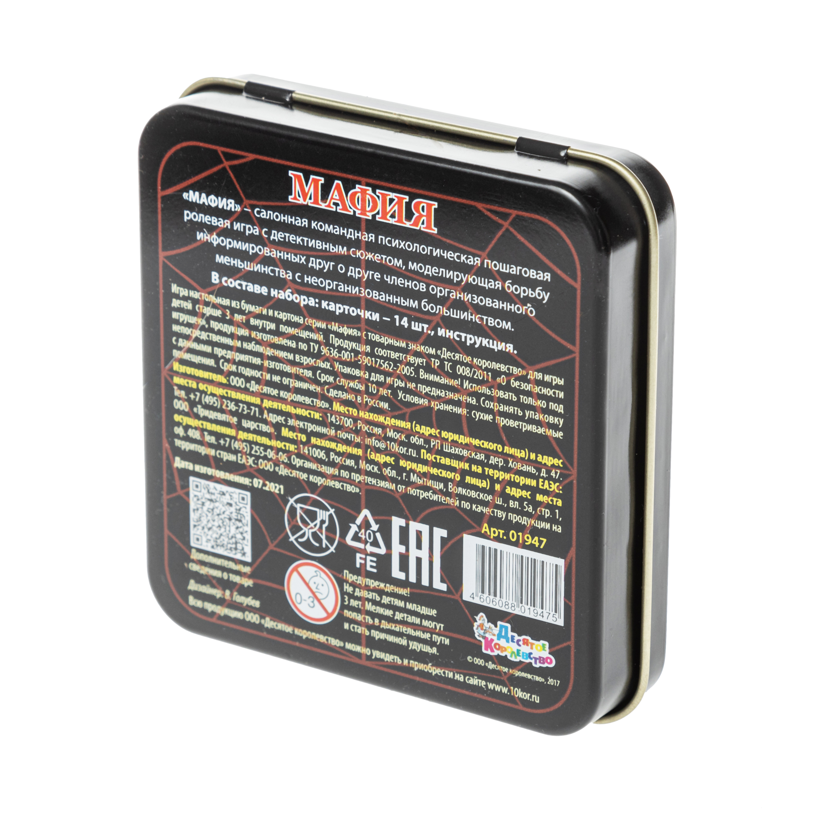 Игра настольная карточная "Мафия" (жестяная коробочка) Вместе с этим товаром покупают: