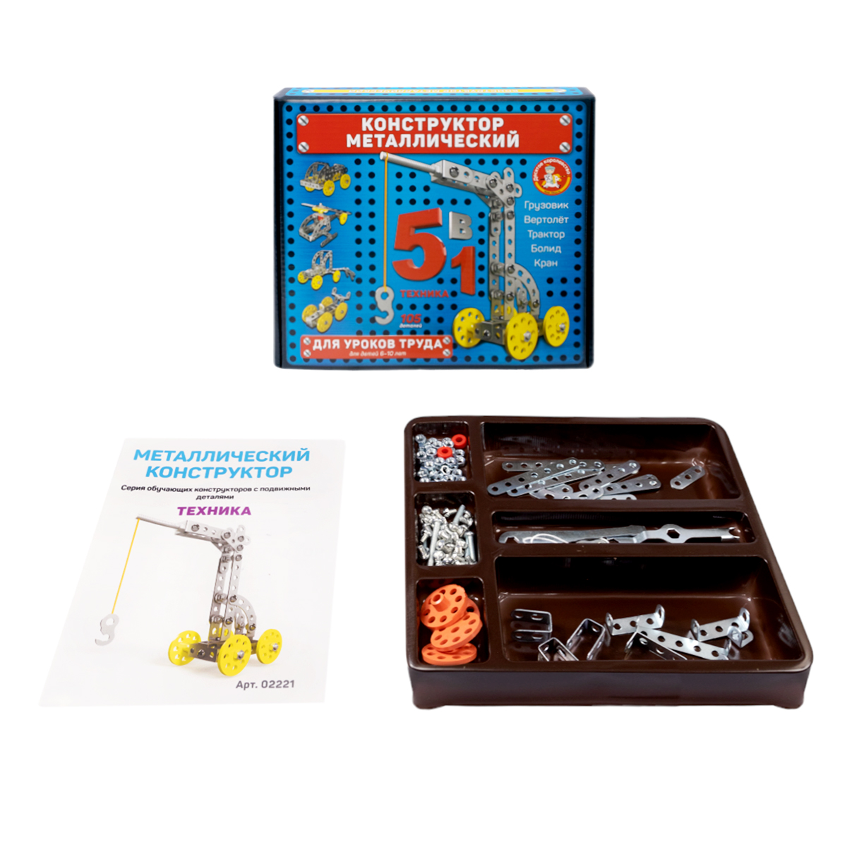 Подробная инструкция по сборке моделей конструктора для уроков труда 5в1 (арт. 02221).