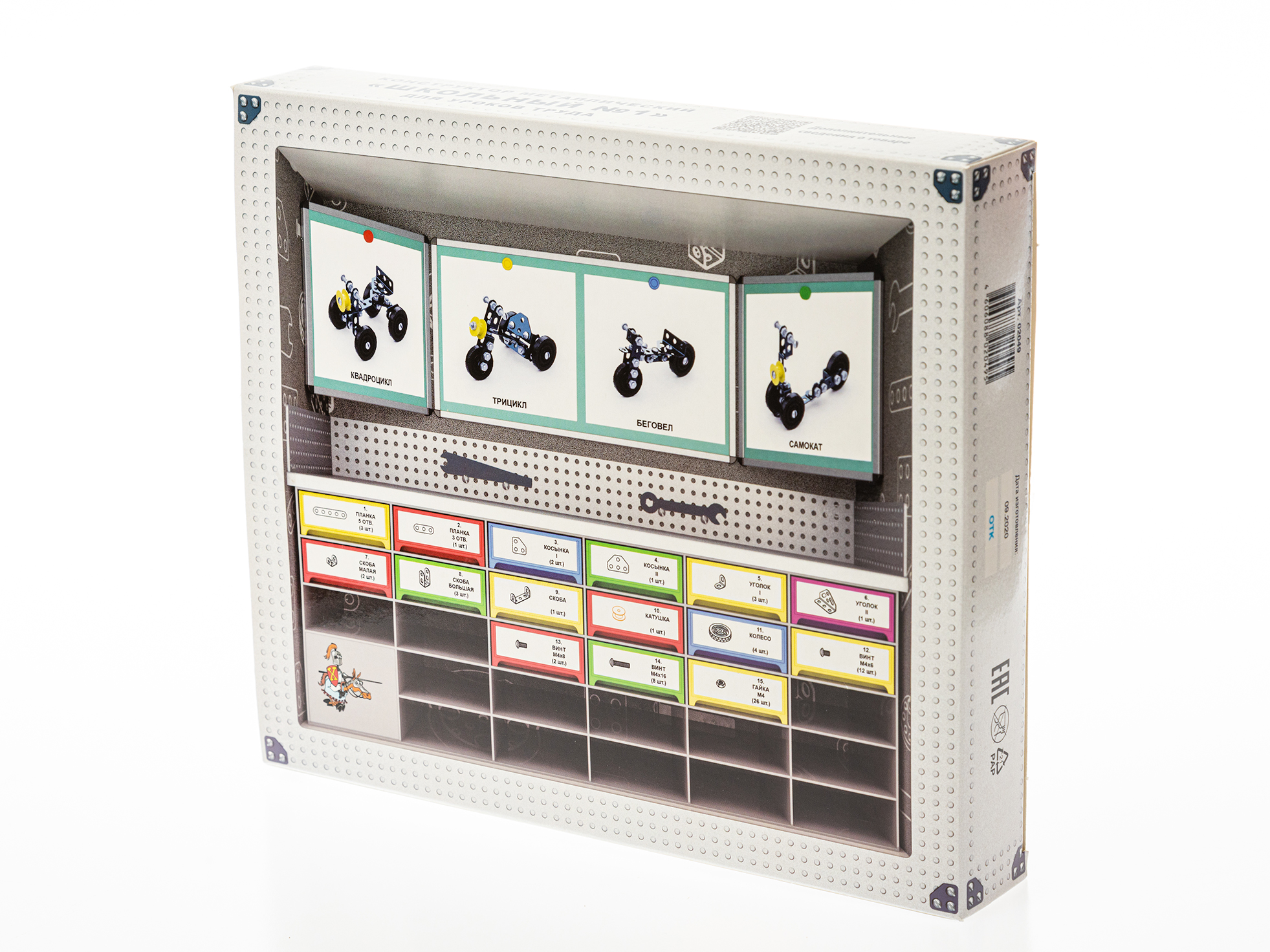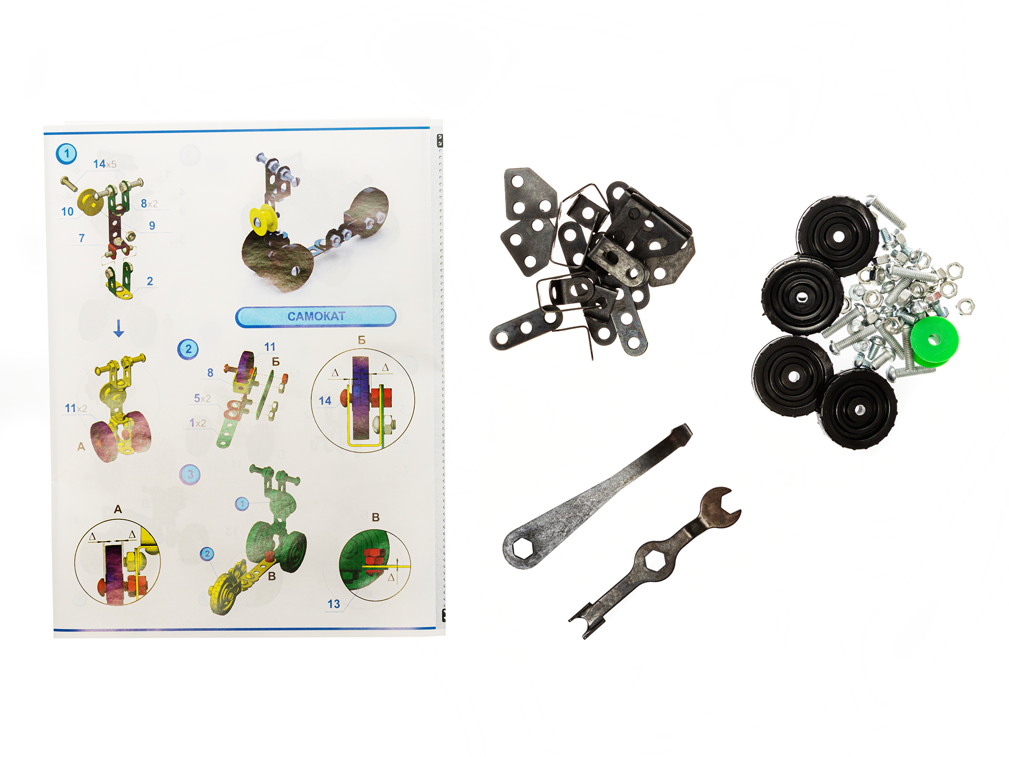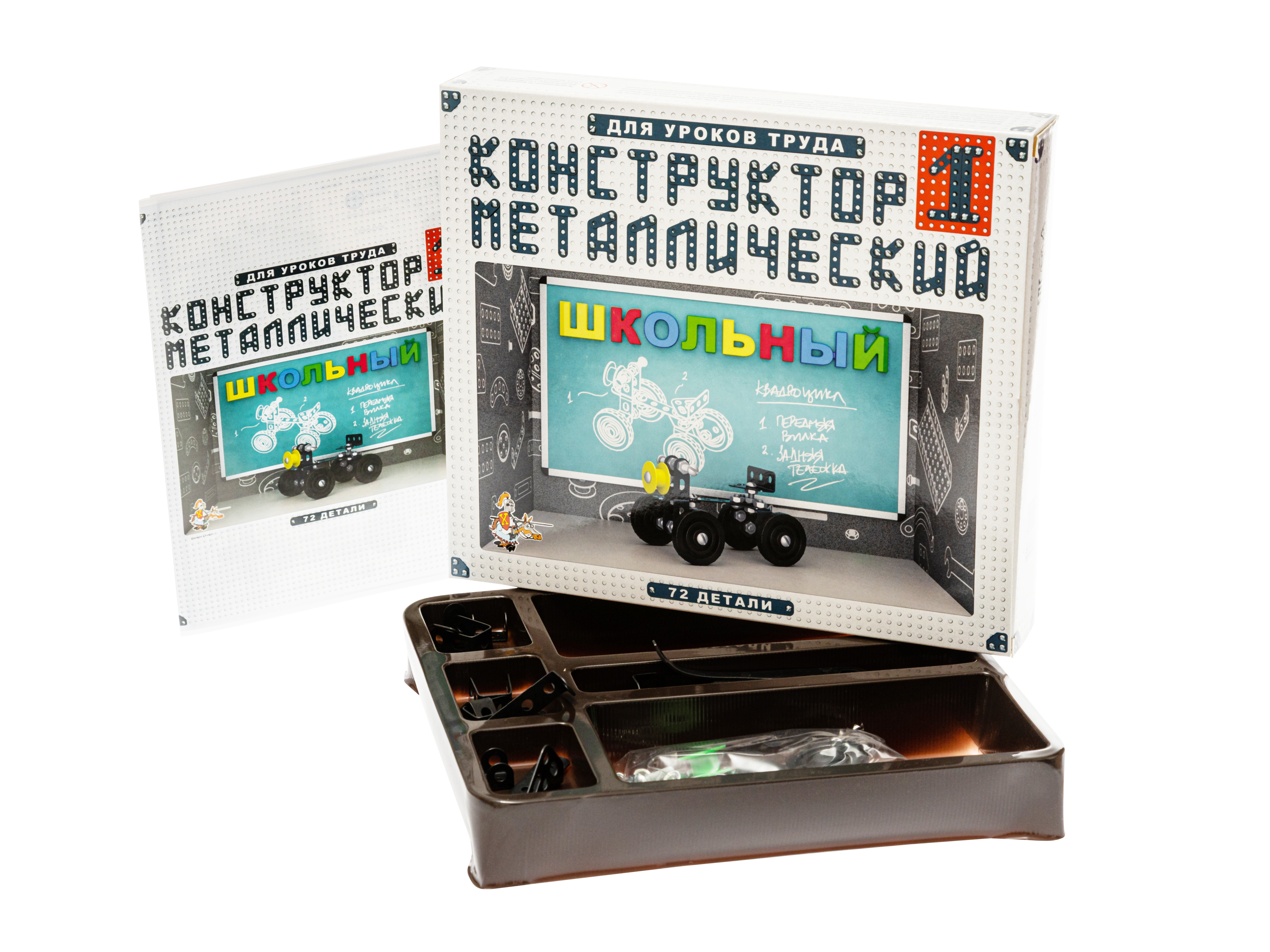 В этой инструкции по сборке школьного железного конструктора № 1, состоящего из 72 деталей, содержится состав (полная деталировка), схема сборки четырех небольших и интересных моделей - беговел, самокат, квадроцикл и трицикл.