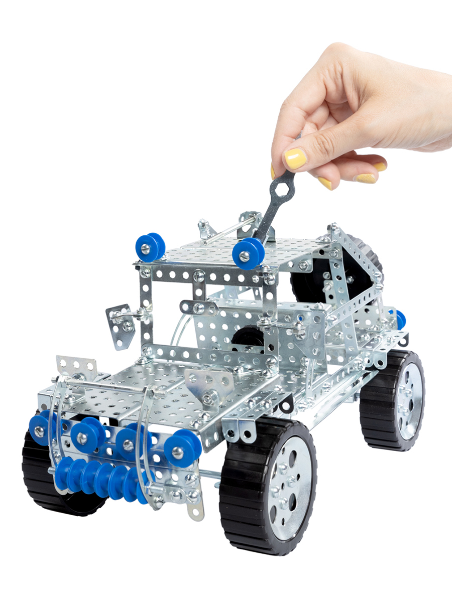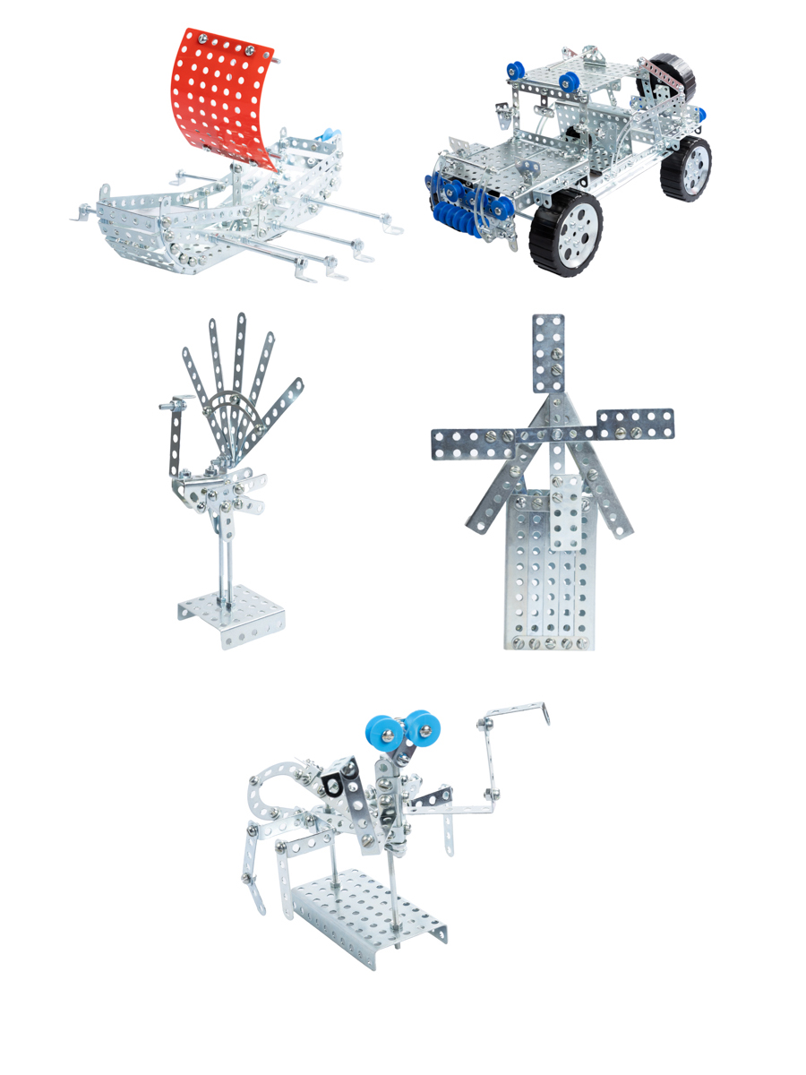 С помощью данного набора ребёнок может своими руками собрать 5 моделей. Каждая сборка — это увлекательный процесс, где металлические детали складываются в сложные механизмы, развивая пространственное мышление и техническую смекалку. А когда все пять моделей будут готовы, начнётся самое интересное — создание собственных уникальных конструкций! Один набор — сотни возможностей: комбинируйте детали, экспериментируйте с формами и придумывайте то, чего нет в инструкции.