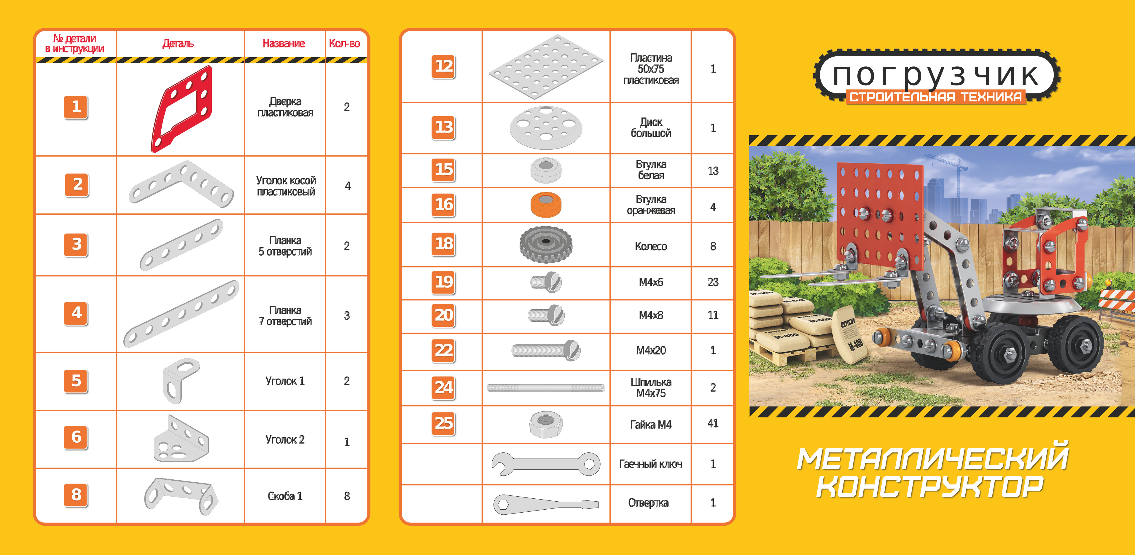 Металлический конструктор «Погрузчик» (Строительная техника)