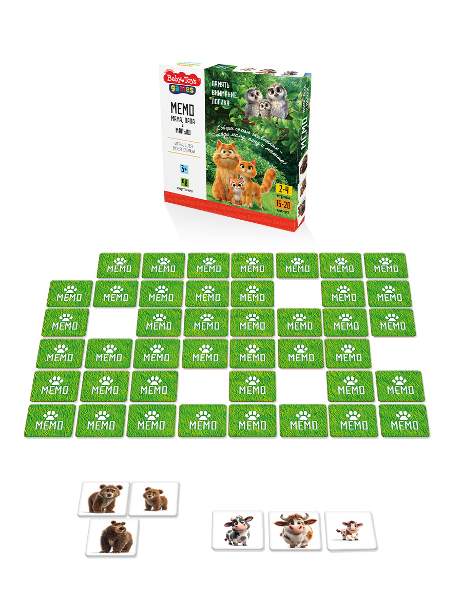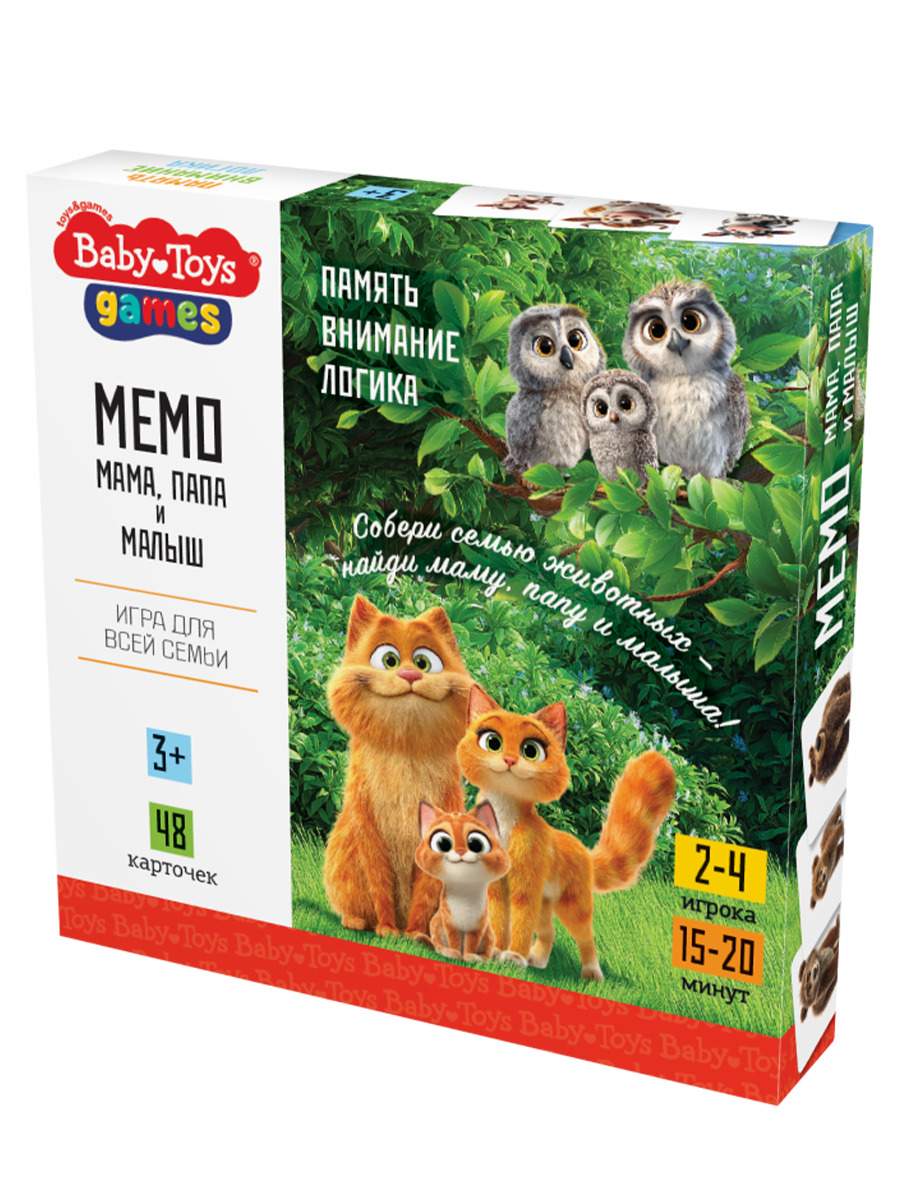 Настольная игра МЕМО «Мама, папа и малыш» разработанная специально для малышей и их родителей, она подарит часы увлекательного и познавательного времяпровождения, развивая память, внимательность и ассоциативное мышление. Также помогает расширить словарный запас ребенка, и развить речь - дети узнают названия различных животных, учатся различать по внешнему виду и сопоставлять с их семьей. Во время игры можно обсуждать особенности каждого животного, рассказывать интересные факты о их жизни и повадках.