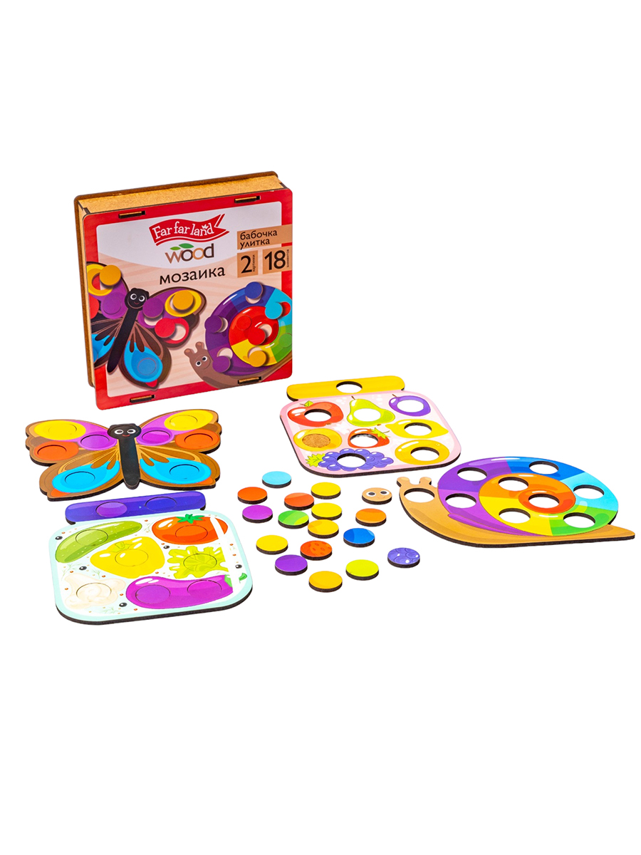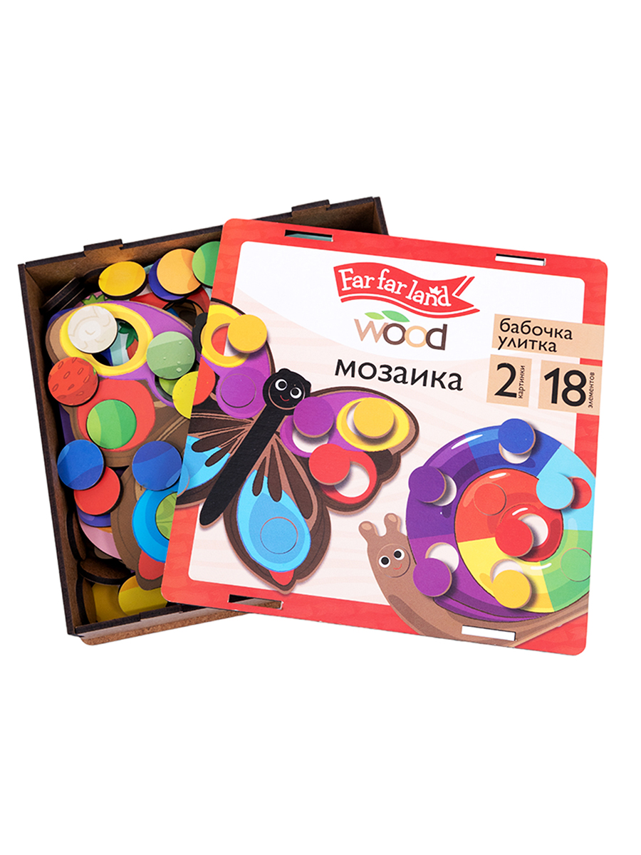 Деревянная мозаика для малышей «Бабочка и улитка» (18 элементов) Far far land Wood