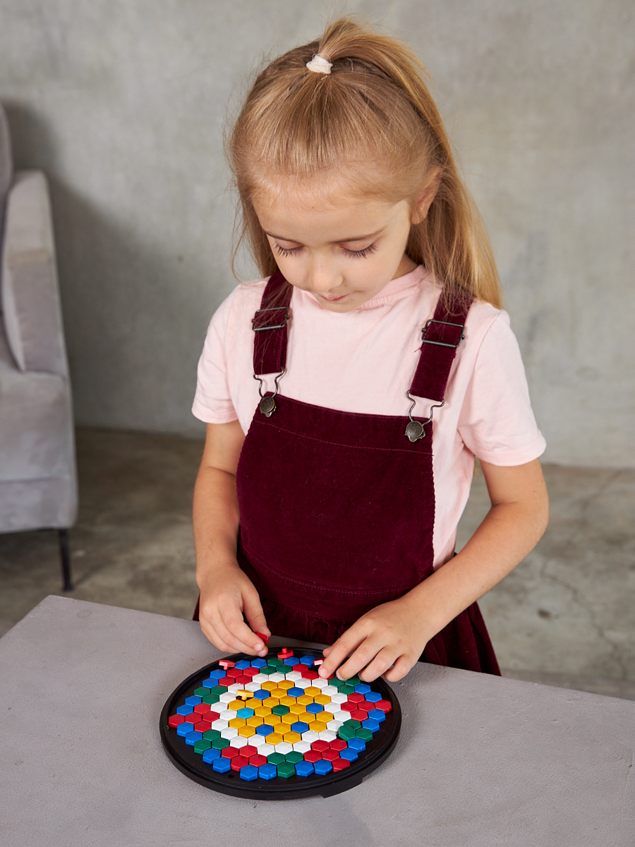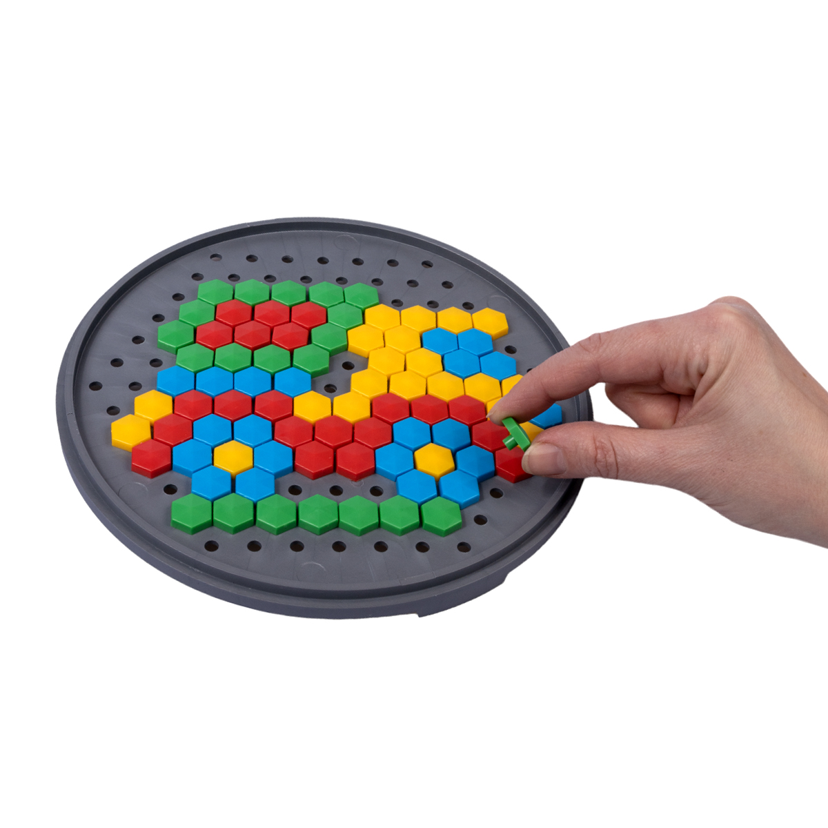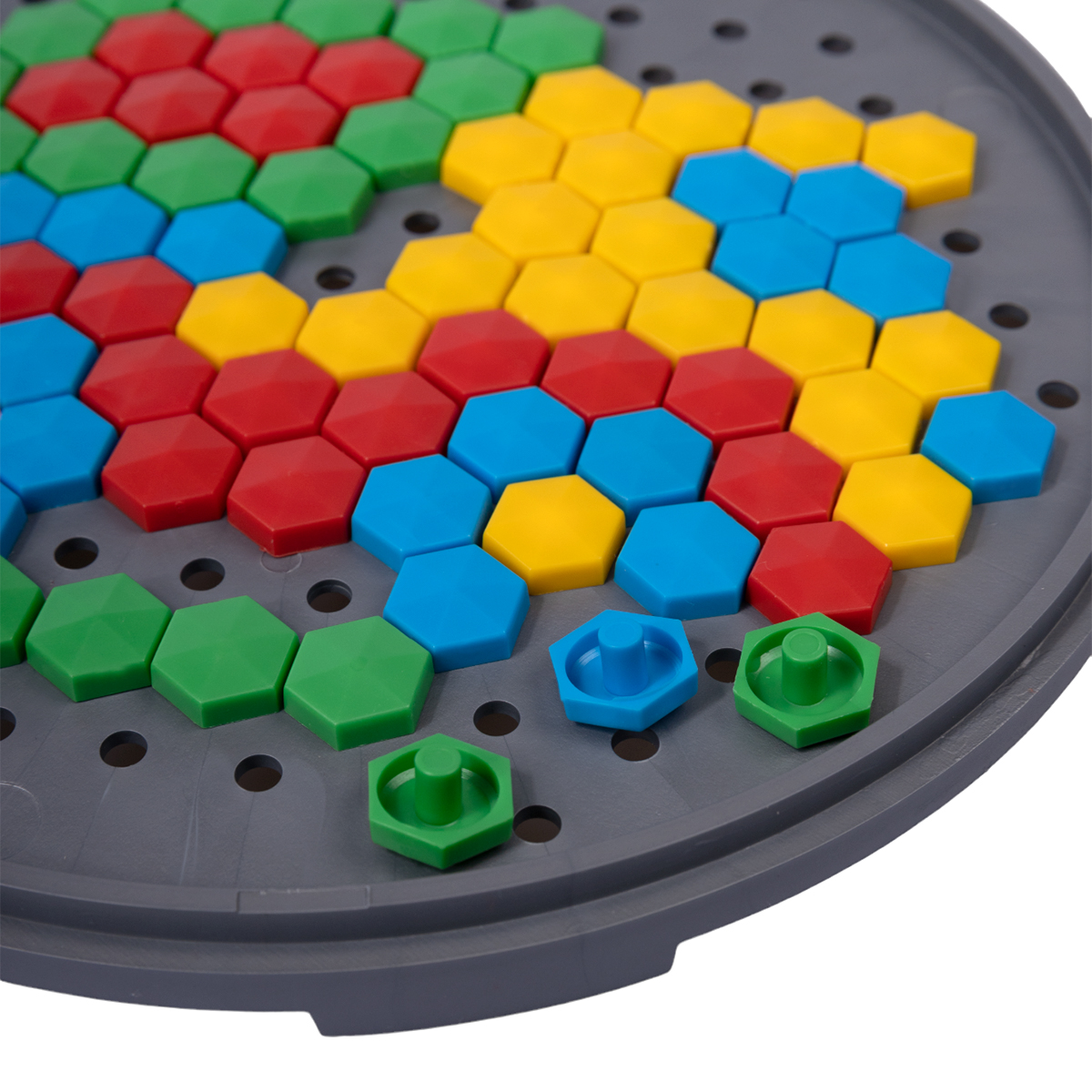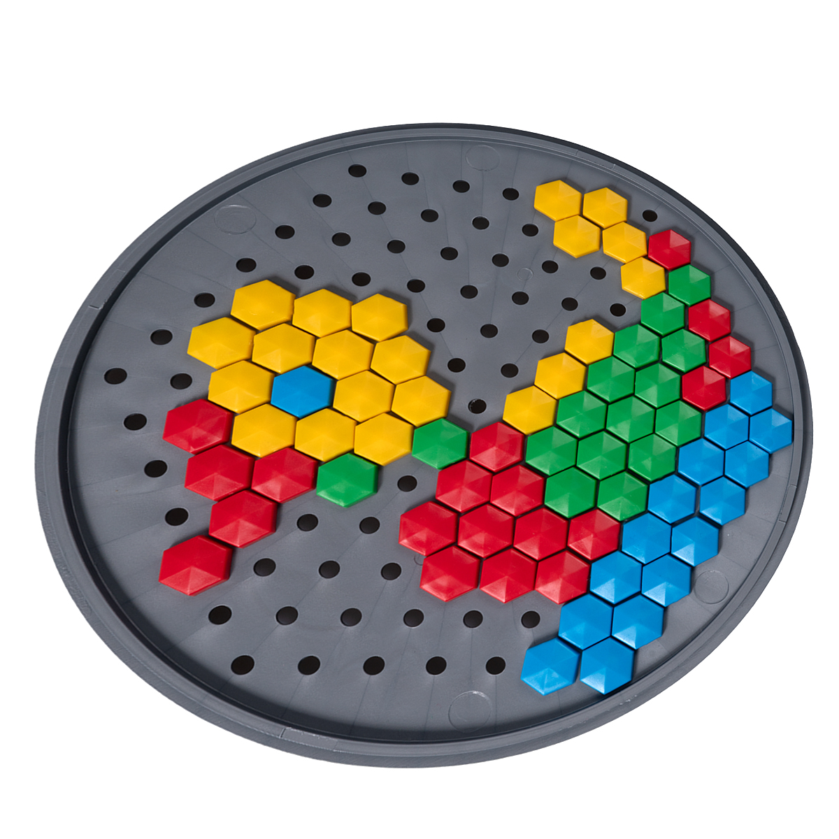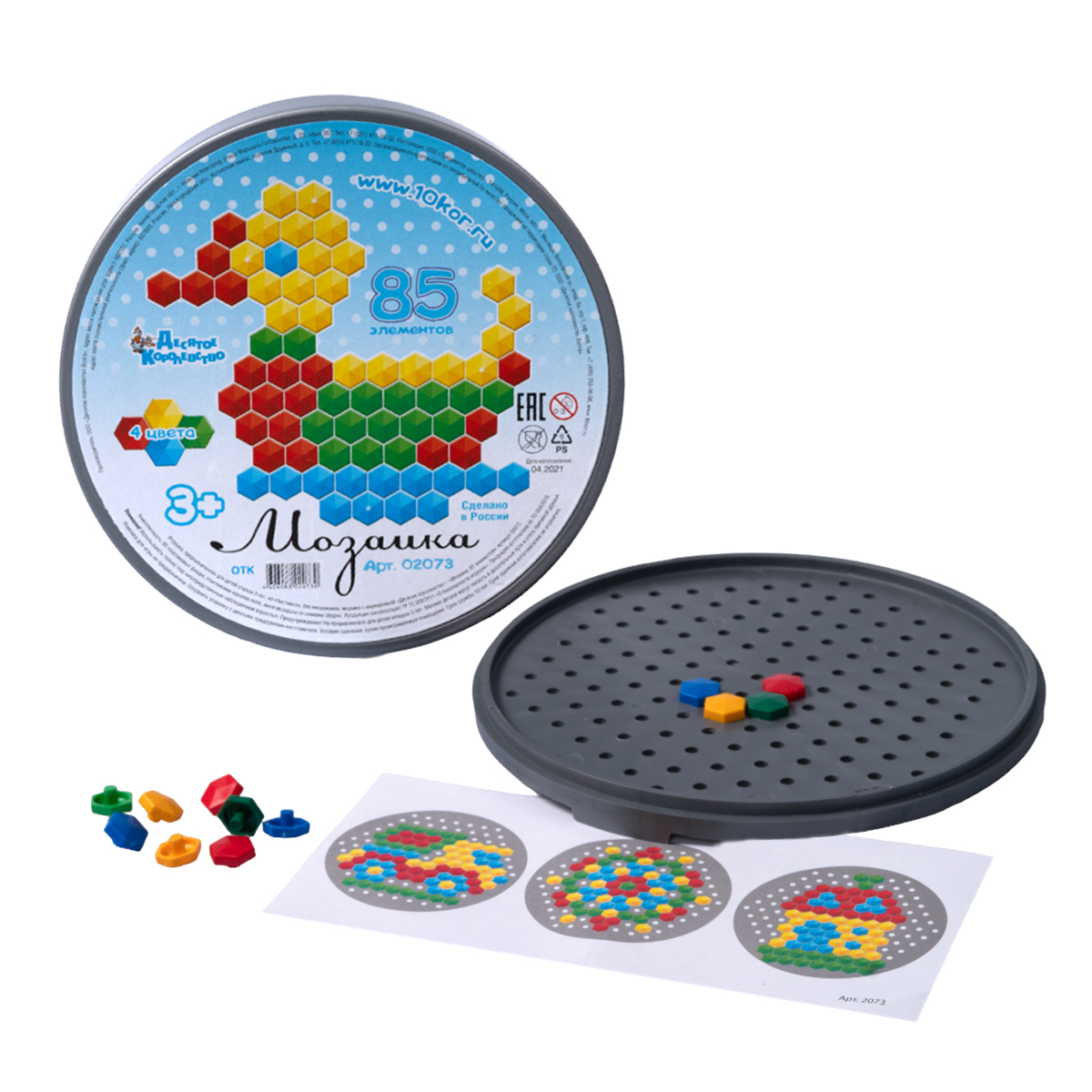 Мозаика пластмассовая детская шестигранная из 85 элементов. Для создания мозаичных изображений можно воспользоваться прилагаемой инструкцией или придумать свои. Игра развивает мелкую моторику, усидчивость, образное мышление, фантазию.