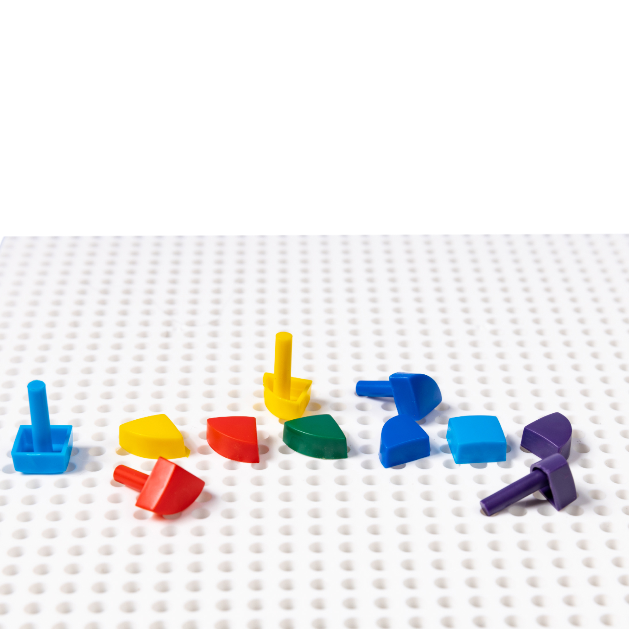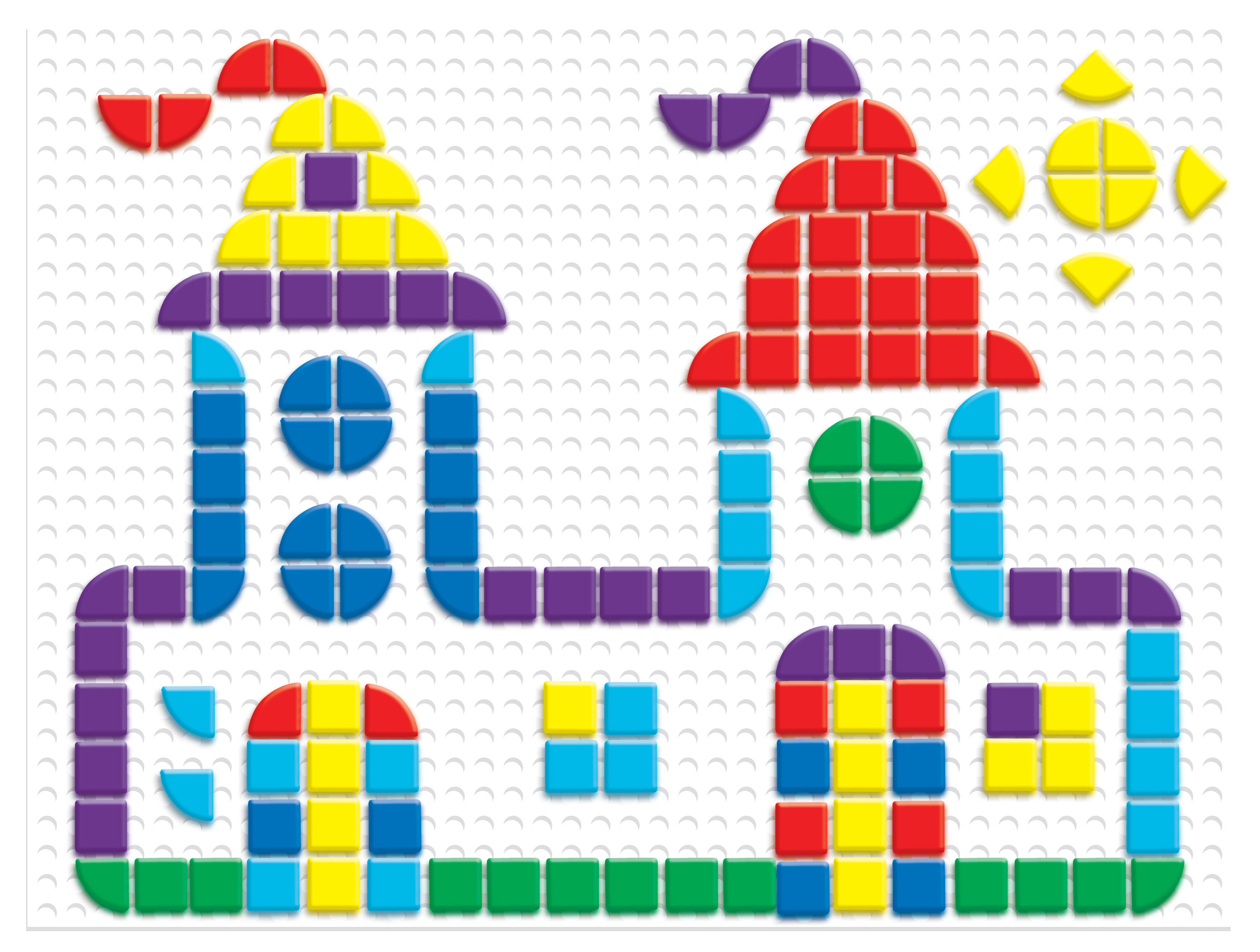 Разместите плату перед ребёнком и разложите вокруг фишки разных цветов и размеров. Вставляйте фишки в отверстия игровой платы, выстраивая различные композиции. Для готовых сюжетов воспользуйтесь рисунками, размещенными на упаковках, или же придумывайте и создавайте свои собственные уникальные произведения!