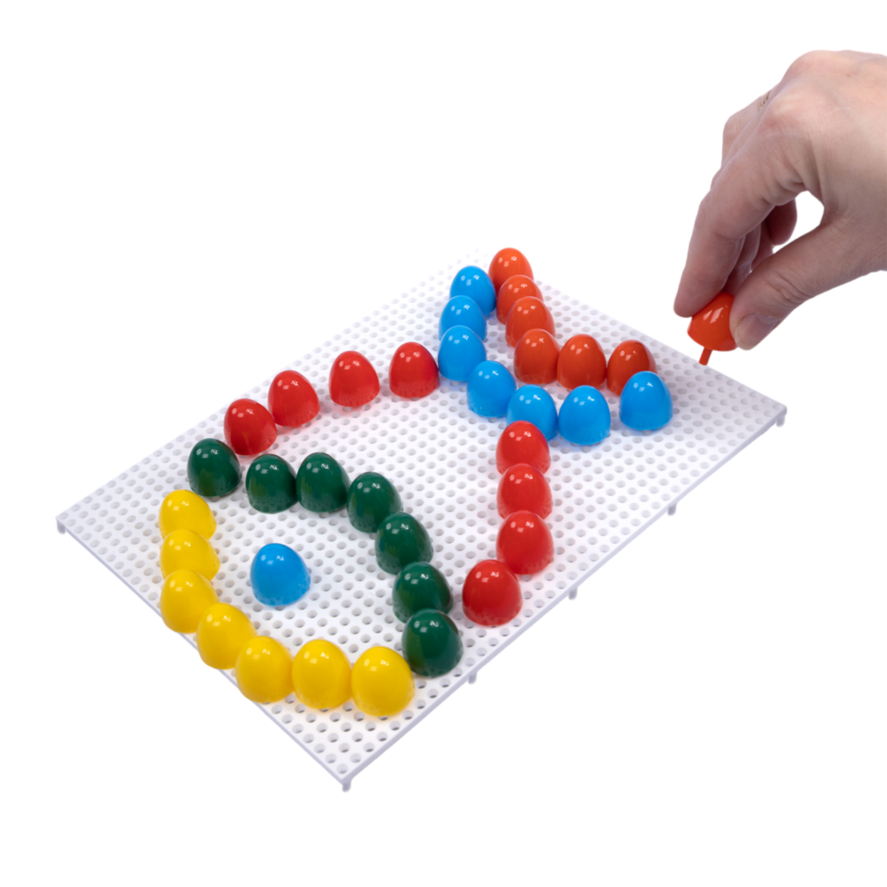 Работая с мозаикой, ребёнок развивает фантазию и творческие навыки, учится усидчивости, тренирует мелкую моторику рук, гибкость пальчиков и щипковый захват, а также учится различать цвета.