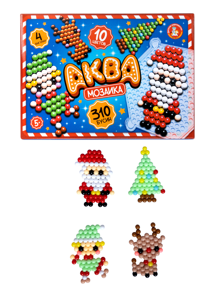 Развивающая аквамозаика для детей «Новый год» - это увлекательный набор, который позволит юным исследователям создать милых новогодних персонажей, без клея и красок! Просто возьми бусины и добавь воды!Состав: