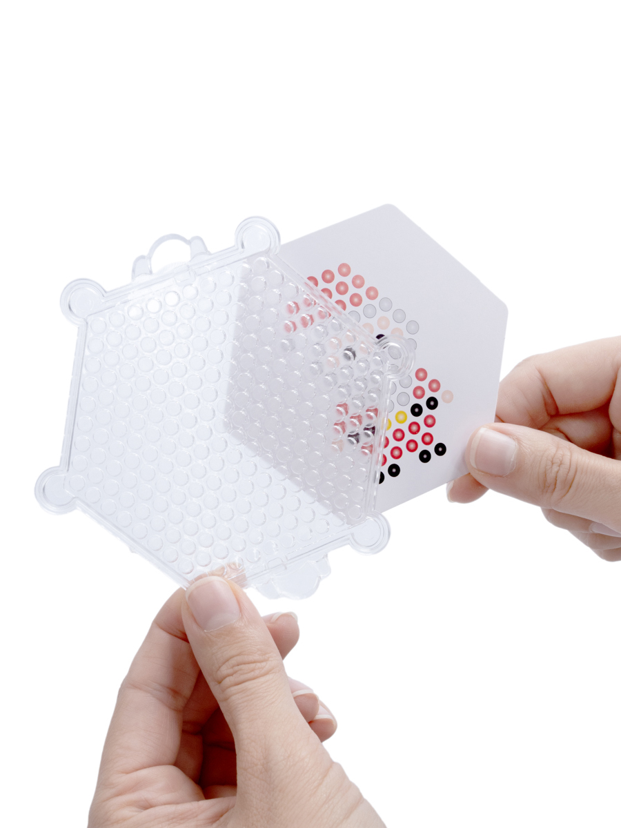 2. При помощи пинцета разложите бусины в ячейки планшета по шаблону.