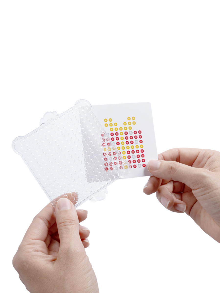 2. При помощи пинцета разложите бусины в ячейки планшета по шаблону.