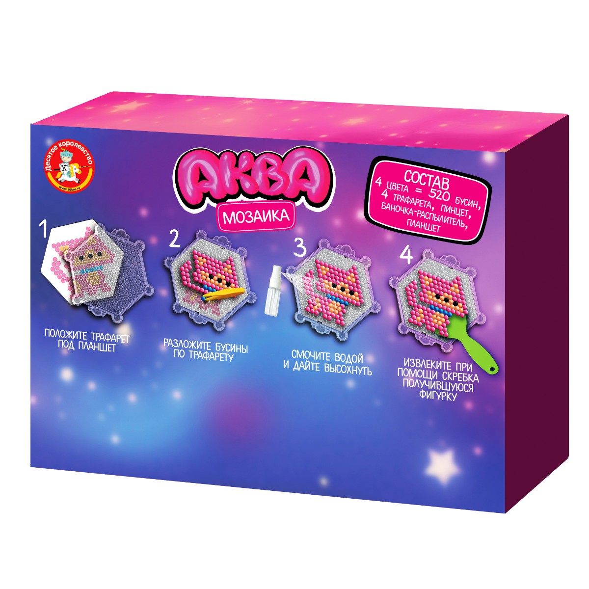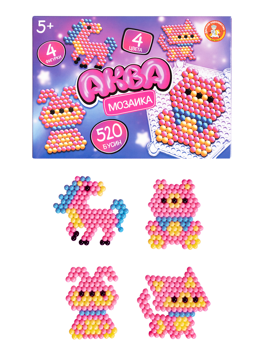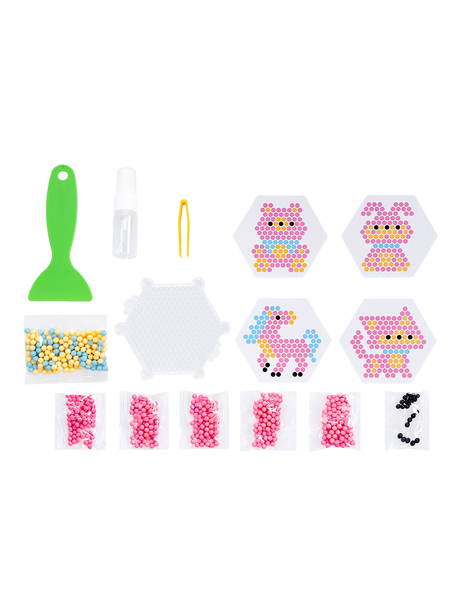 Развивающая аквамозаика «Розовые животные» - это необычный набор для творчества, с помощью которого можно создать мозаичные фигурки: мишка, зайчик, единорог, котик и играть с ними.Состав: