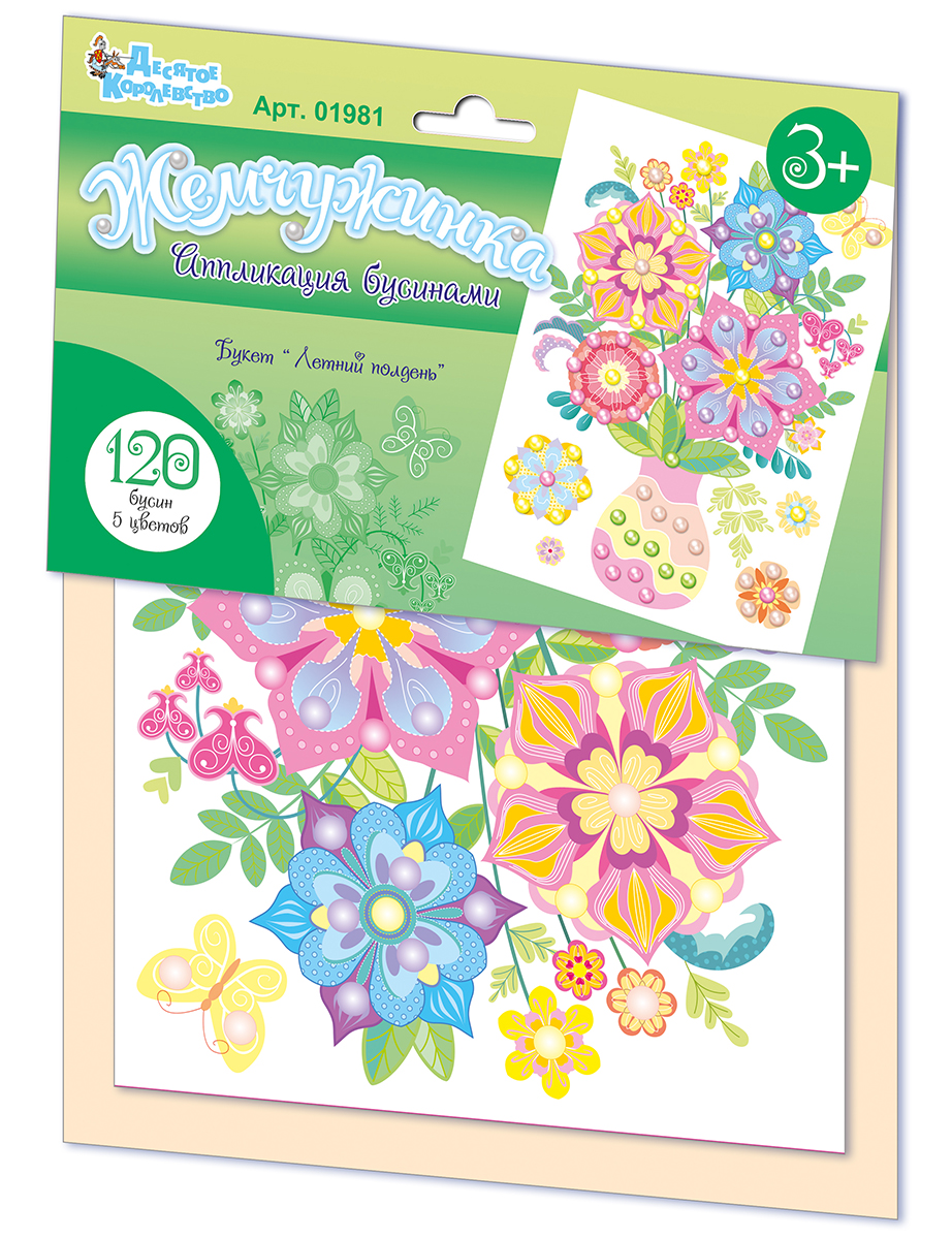 Аппликации бусинами «Букет Летний полдень» в полиэтиленовой упаковке на европодвесе содержит все необходимое: