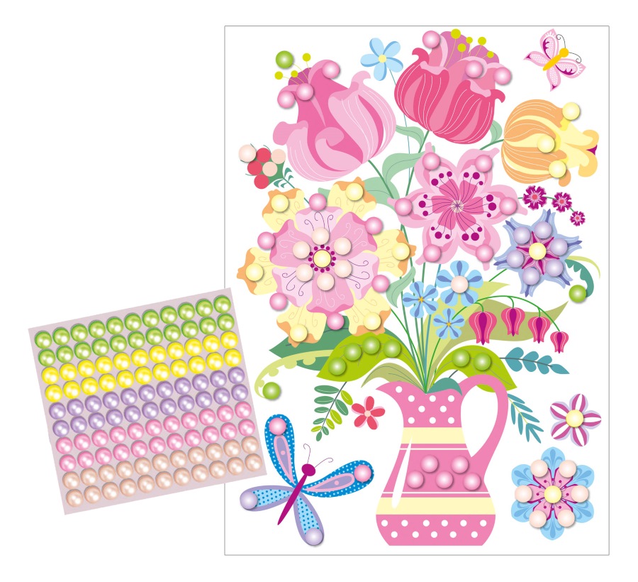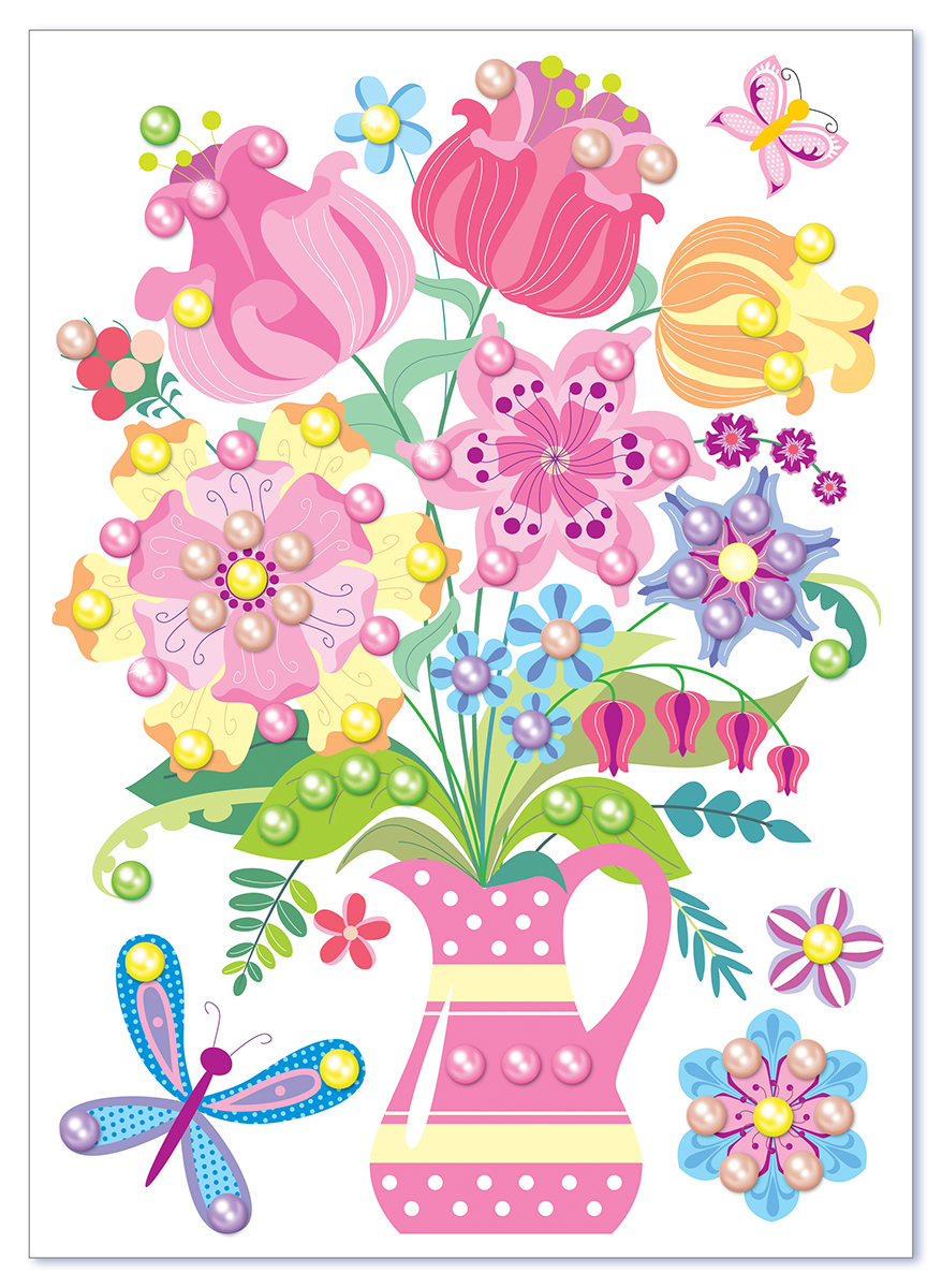 Аппликации бусинами «Букет Перламутровая сказка» в полиэтиленовой упаковке на европодвесе содержит все необходимое:
