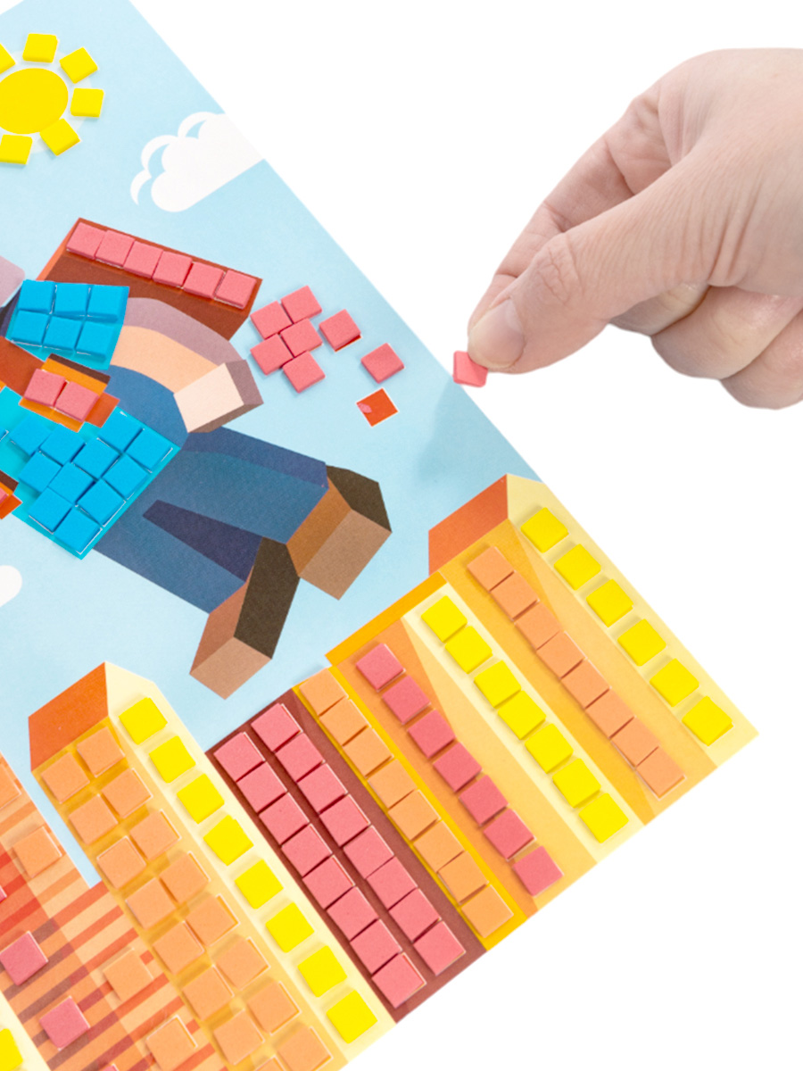 3. Приклейте квадратик на картонную основу, на соответствующее его цвету место.