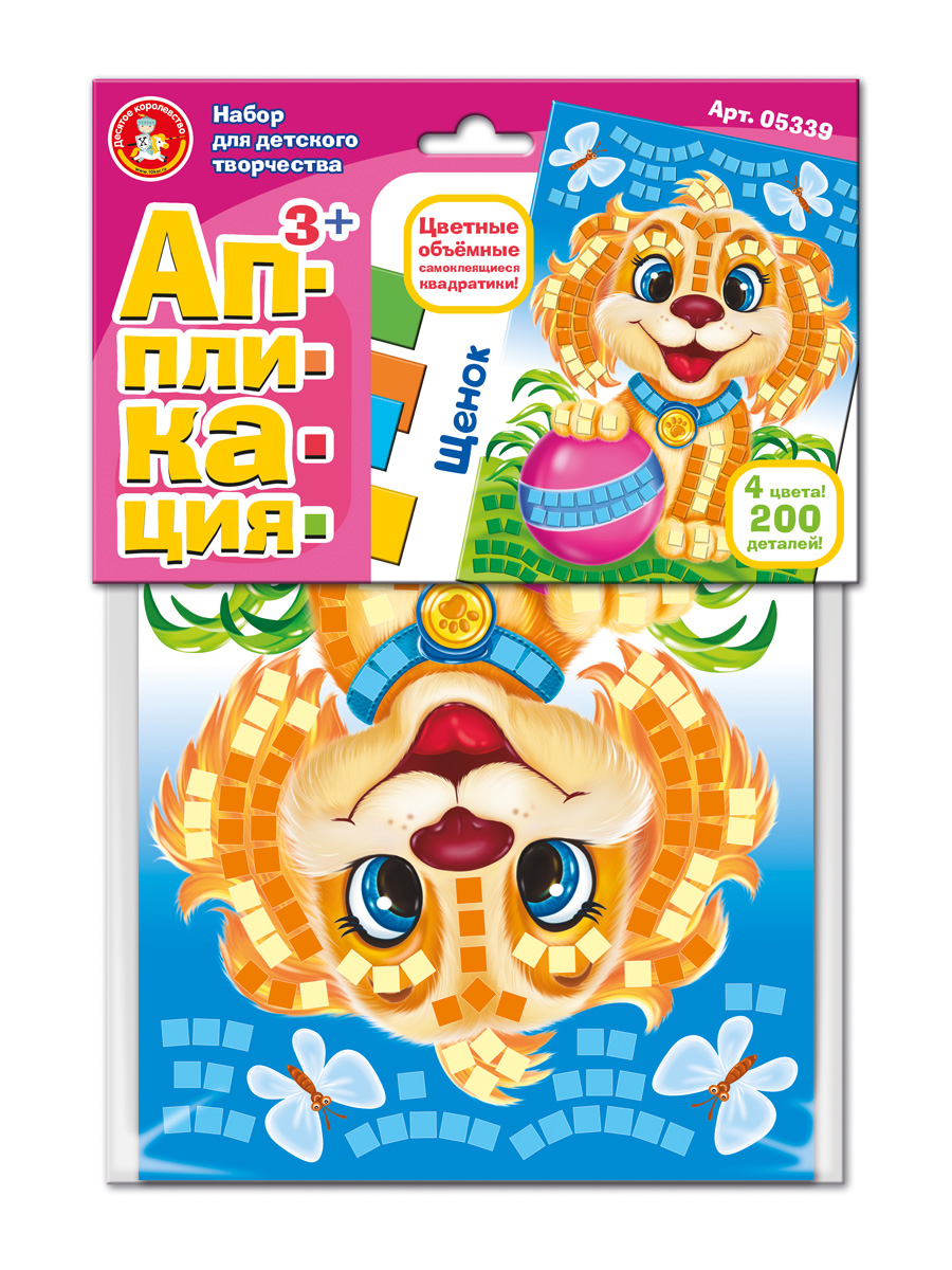 Аппликация для детей «Щенок» (4 цвета, 200 элементов)