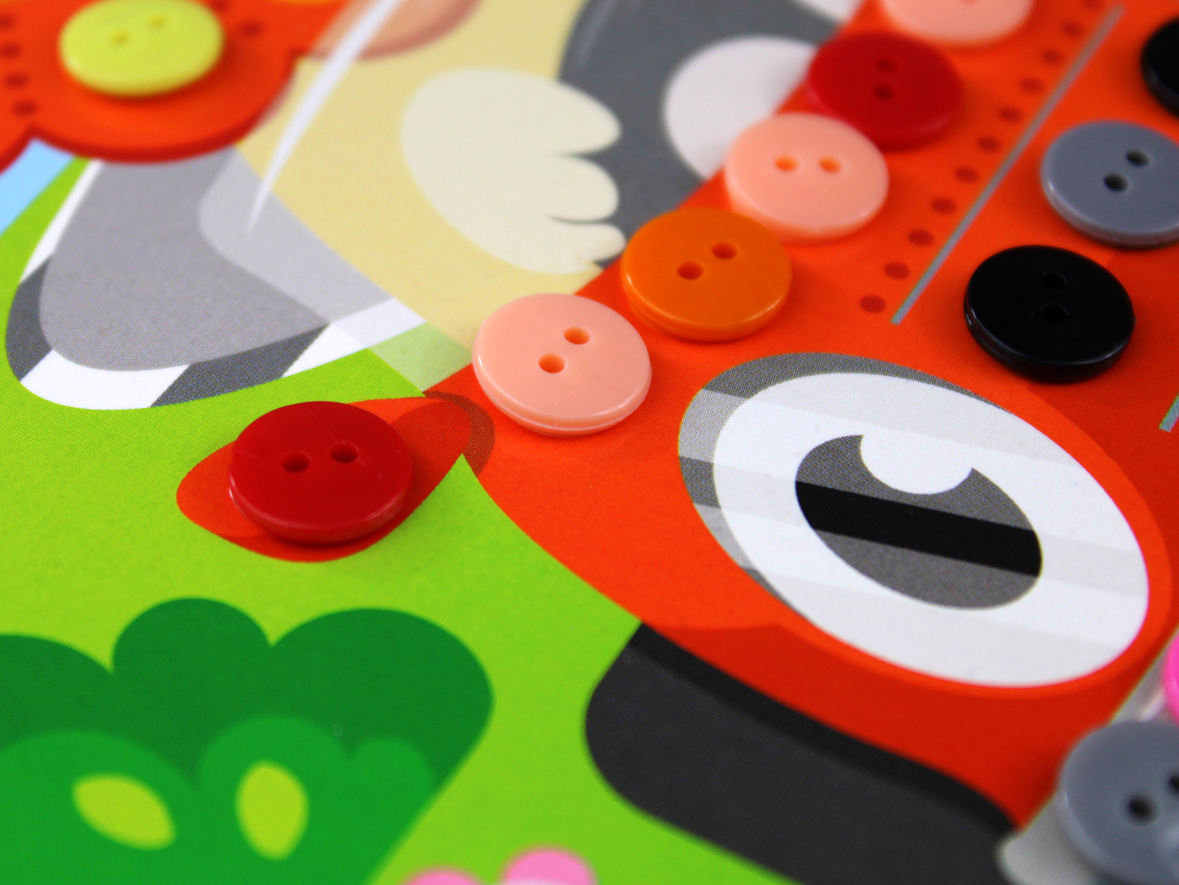 Приклейте пуговицу на рисунок в соответствии с цветом.