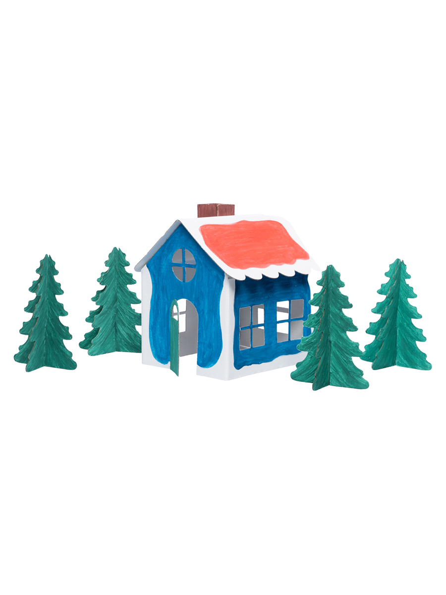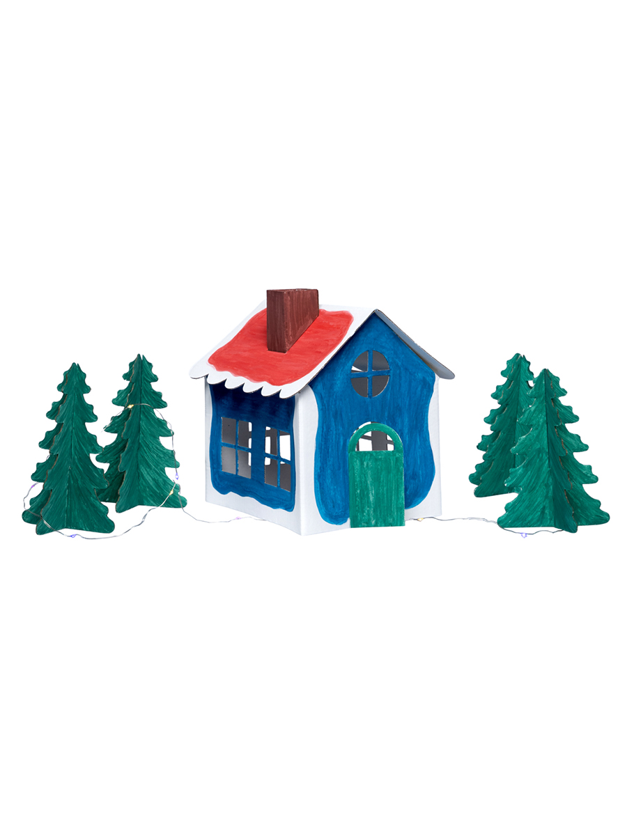 Проявите фантазию и раскрасьте домик и ёлочки, как вам захочется, либо по образцу на упаковке.