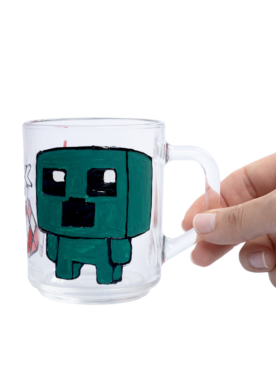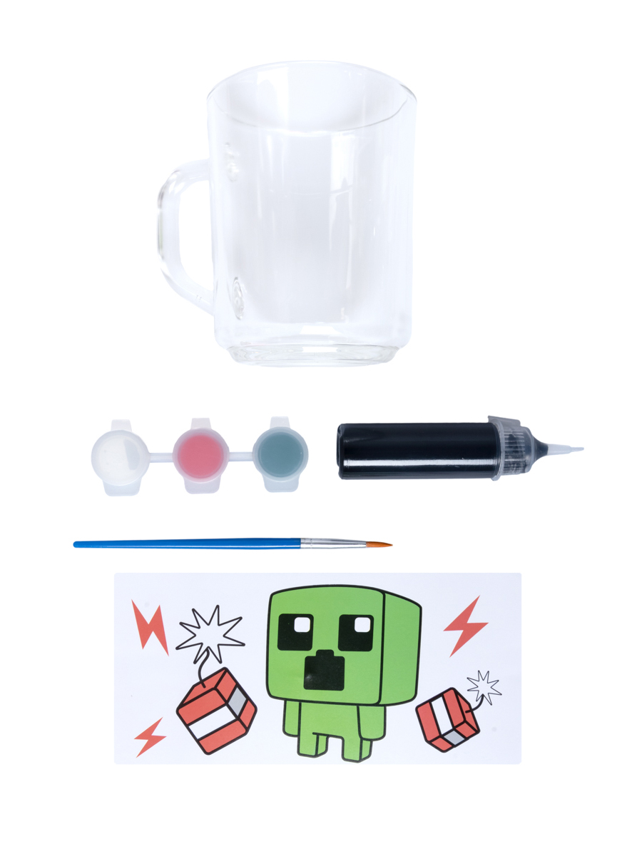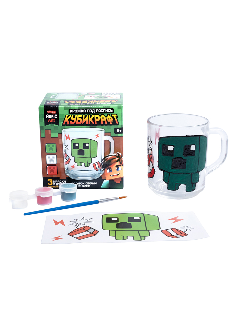 Кружка под роспись «Кубикрафт» обязательно увлечёт вашего ребёнка яркими цветами и оригинальным исполнением! Используя шаблон, Вы сможете сделать неповторимую композицию с любимым персонажем на стеклянной поверхности. Кроме того, необычно оформленная кружка может стать великолепным подарком близким и друзьям. Состав набора: