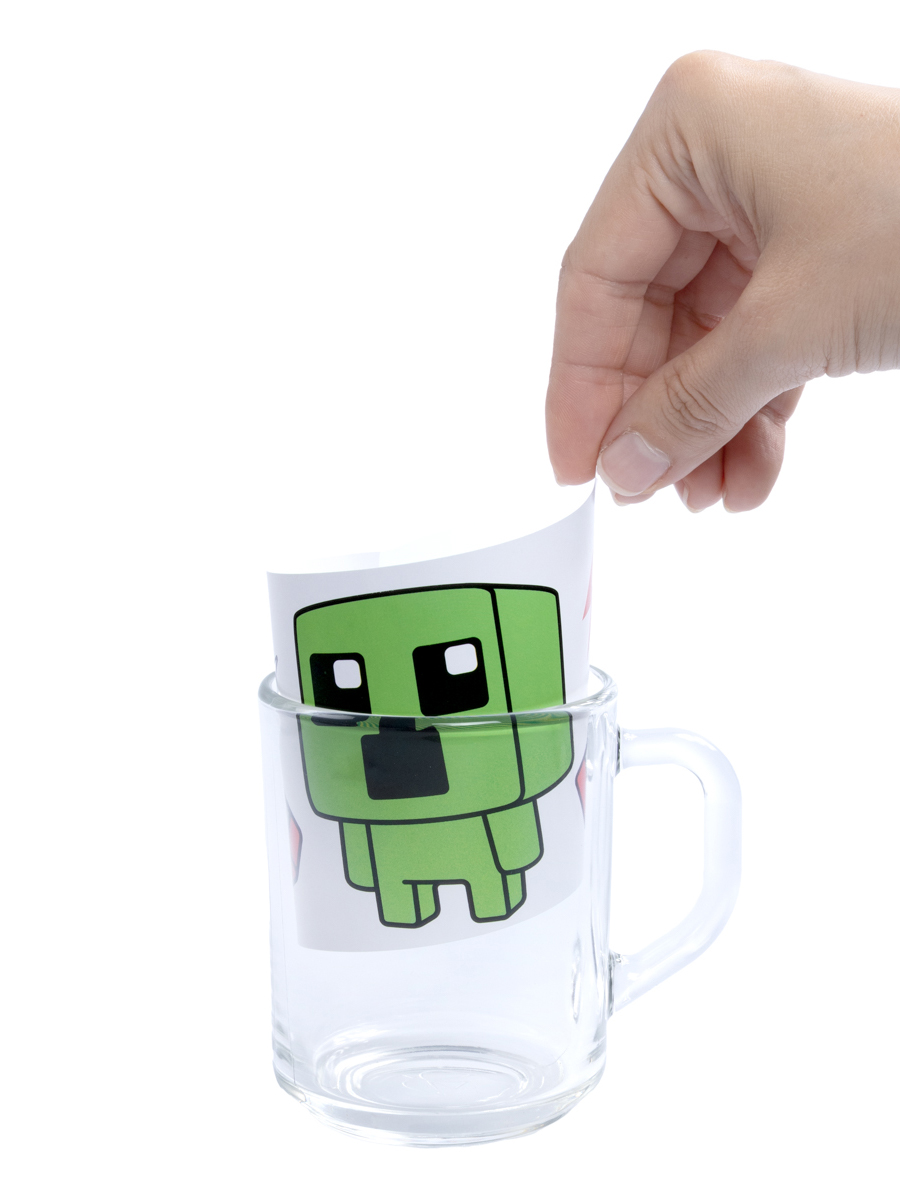 2. Поместите трафарет внутрь кружки таким образом, чтобы рисунок был виден с внешней стороны кружки.