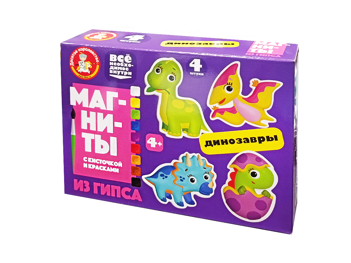 С помощью набора для создания магнитов из гипса «Динозавры» можно своими руками изготовить магниты с изображением симпатичных динозавриков. Следуя пошаговой инструкции, создавайте оригинальные поделки в подарок для друзей и близких.