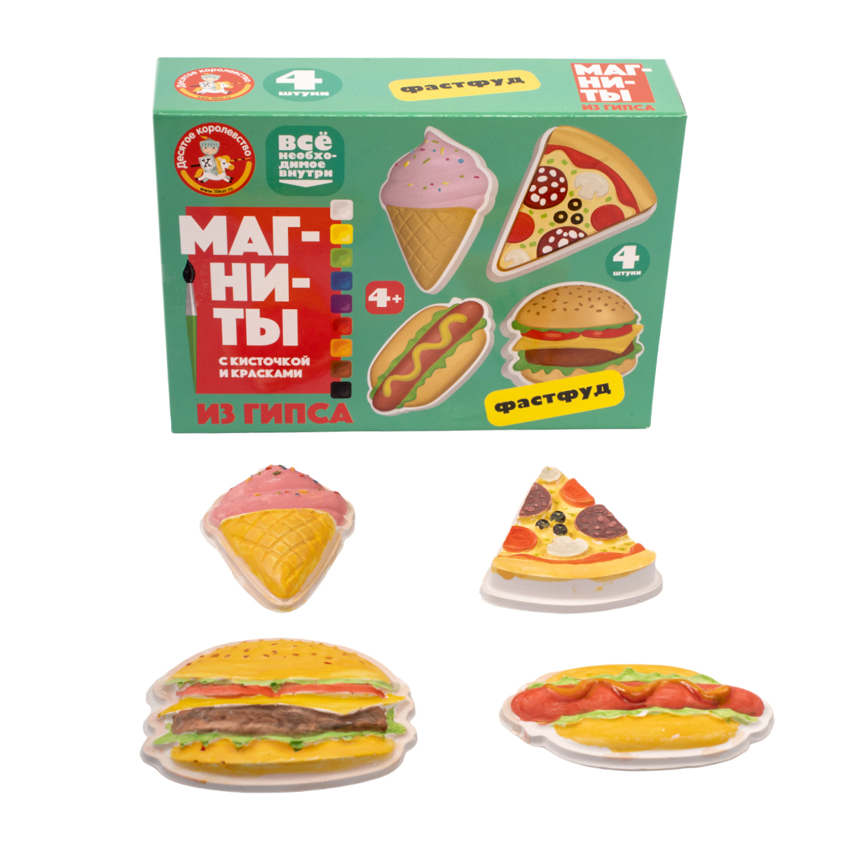 Набор магниты из гипса под роспись «Фастфуд» – это возможность для детей своими руками изготовить магнит, следуя пошаговой инструкции, и получить оригинальный вариант для подарка.