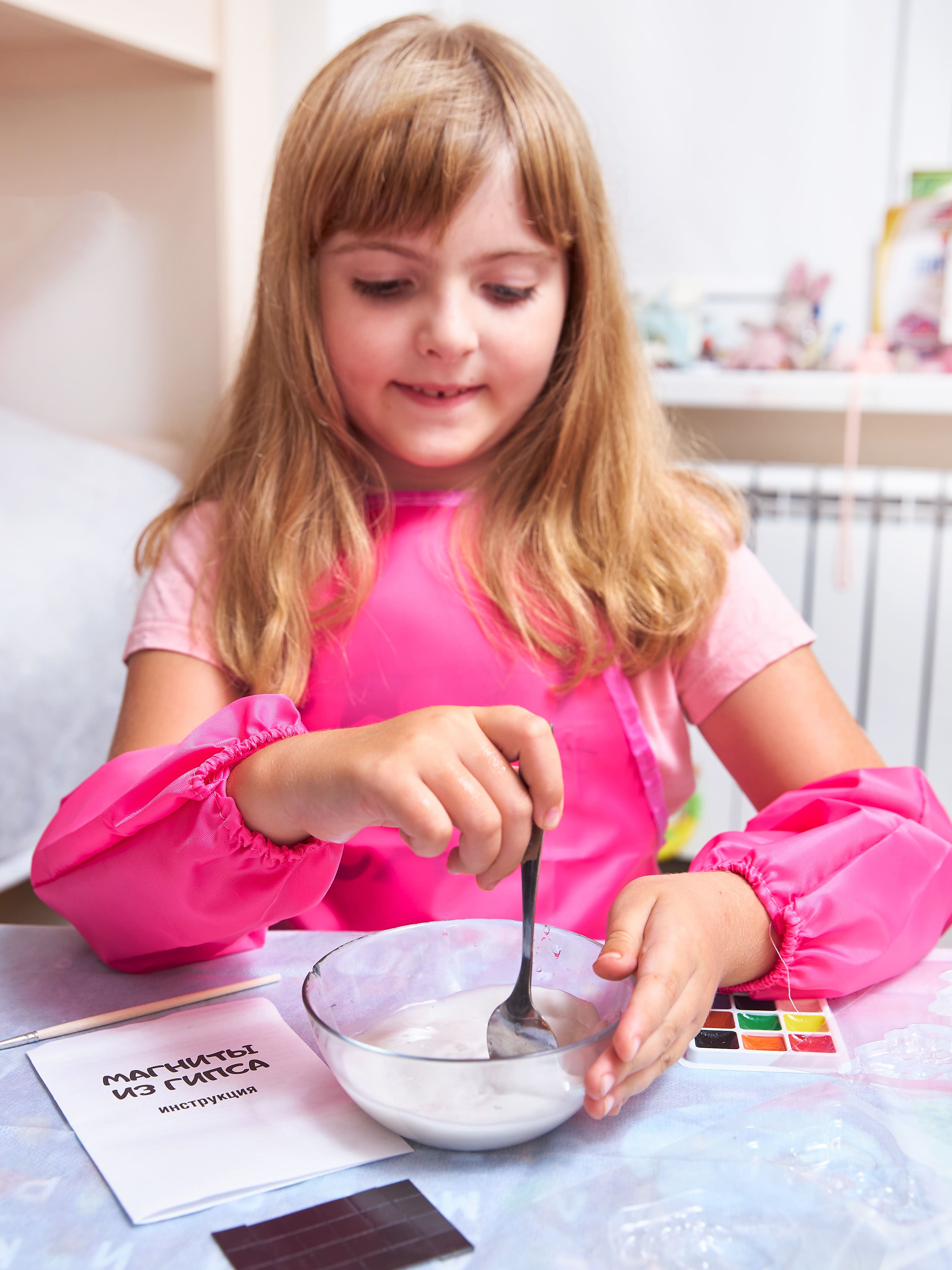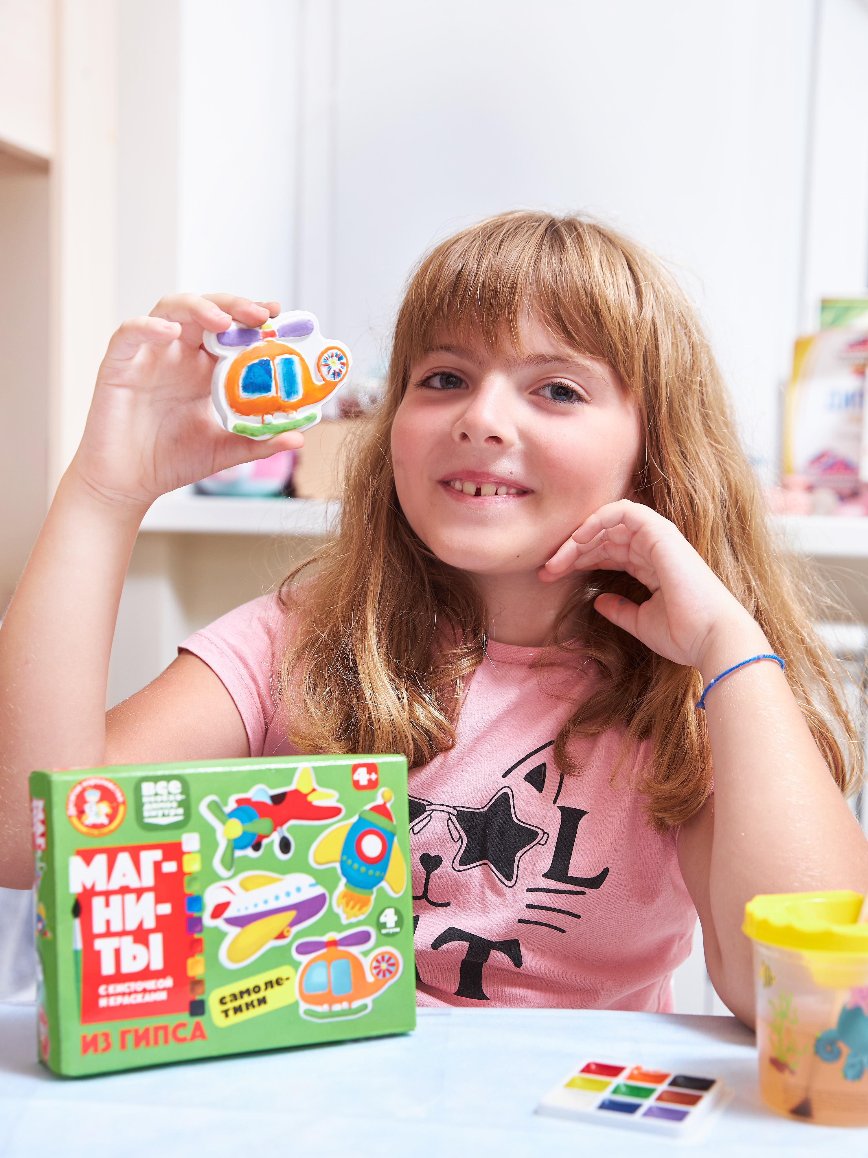 В процессе создания магнитов из гипса ребёнок развивает мелкую моторику, концентрацию внимания и художественный вкус.