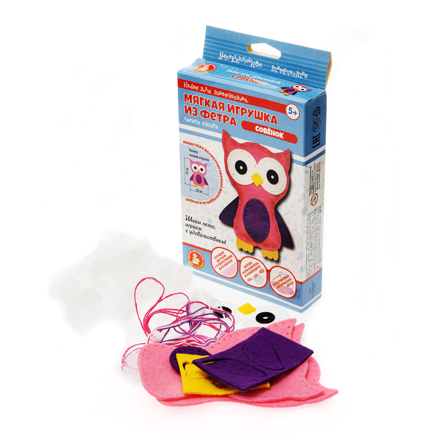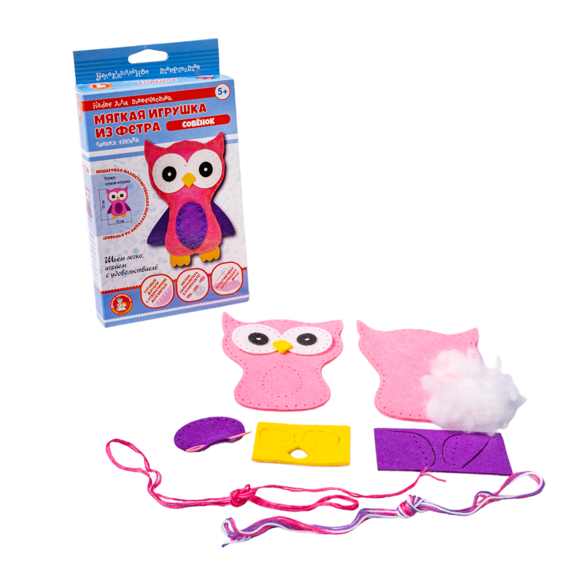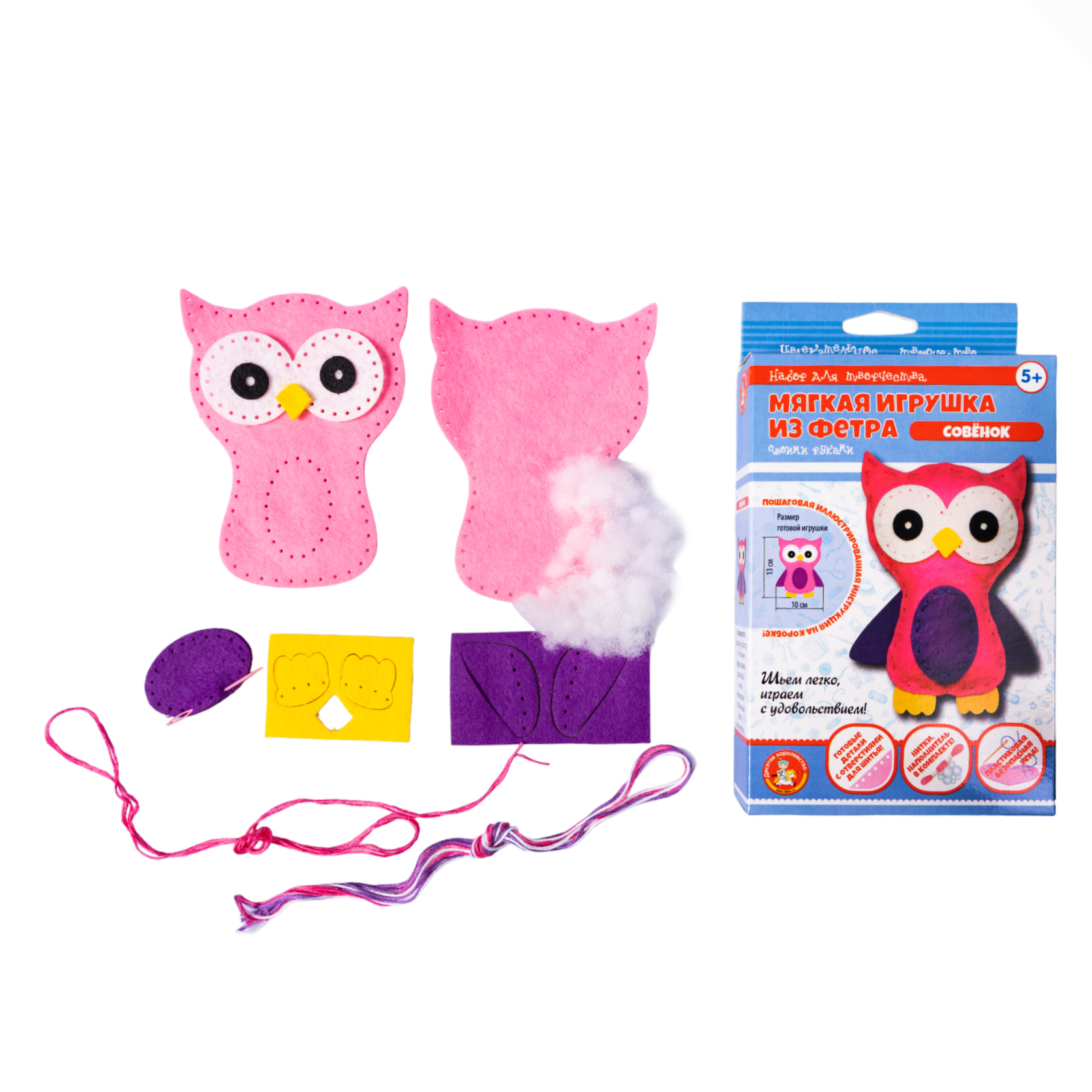 Набор для создания мягкой игрушки из фетра «Совёнок» – это хорошая идея для подарка и интересного проведения времени! Благодаря готовой комплектации, перфорированным отверстиям и подробной инструкции на упаковке, создать игрушку не составит особого труда.Состав набора: