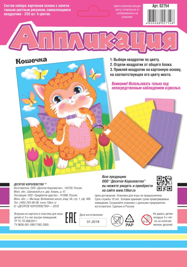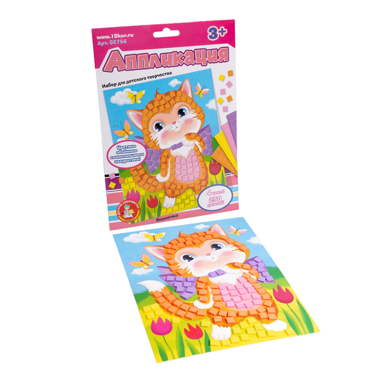 Аппликацию с самоклеящимися элементами «Кошечка», как и другие, можно приобрести со скидкой в интернет магазине производителя «Десятое Королевство».