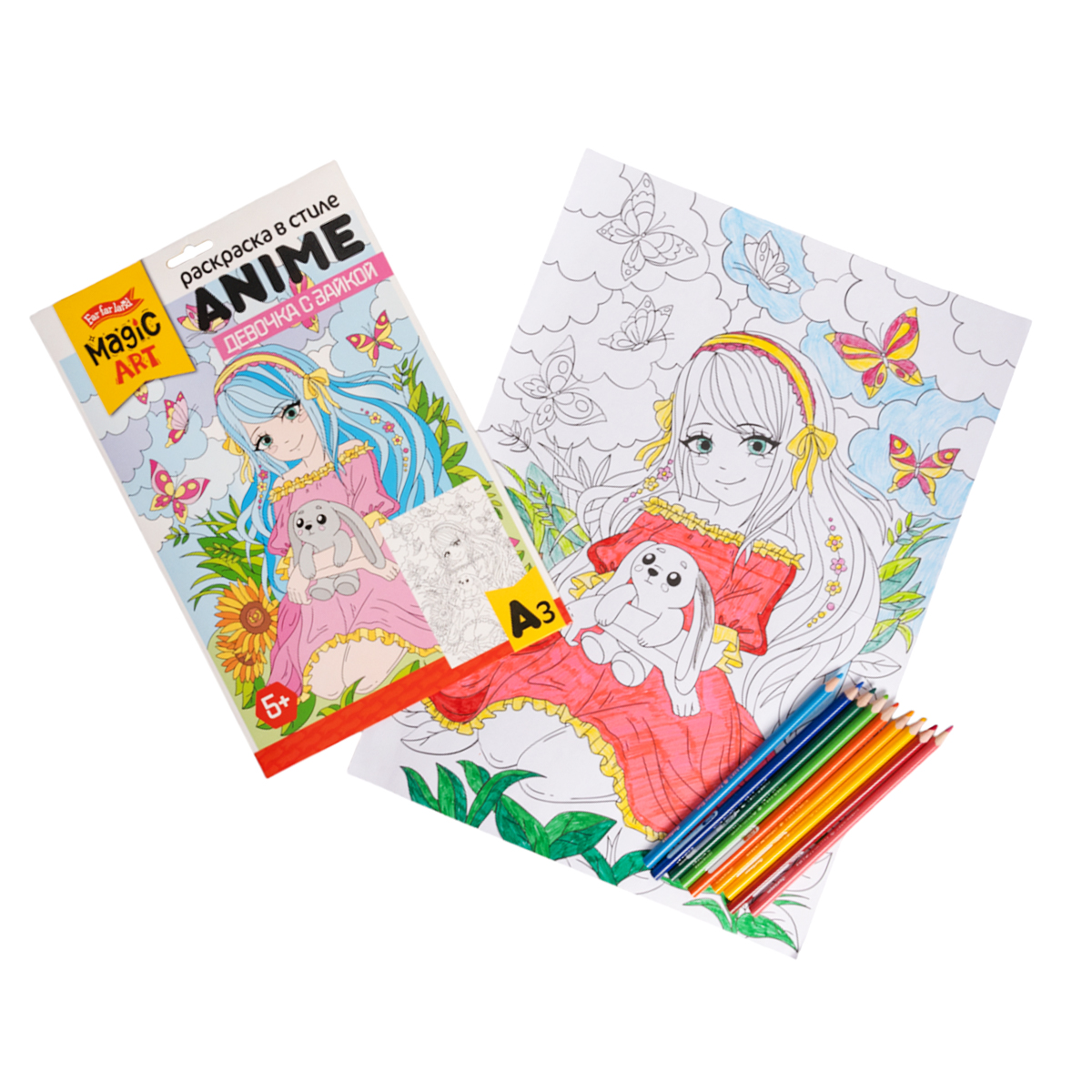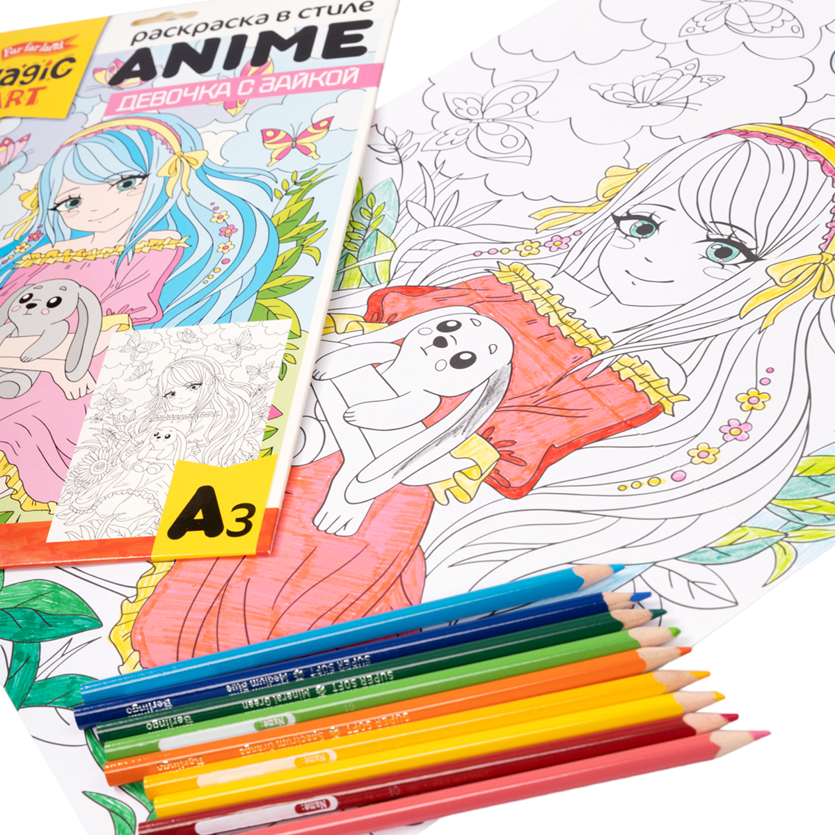 Набор для творчества. Раскраска в стиле ANIME "Девочка с зайкой" (формат А3) Вместе с этим товаром покупают: