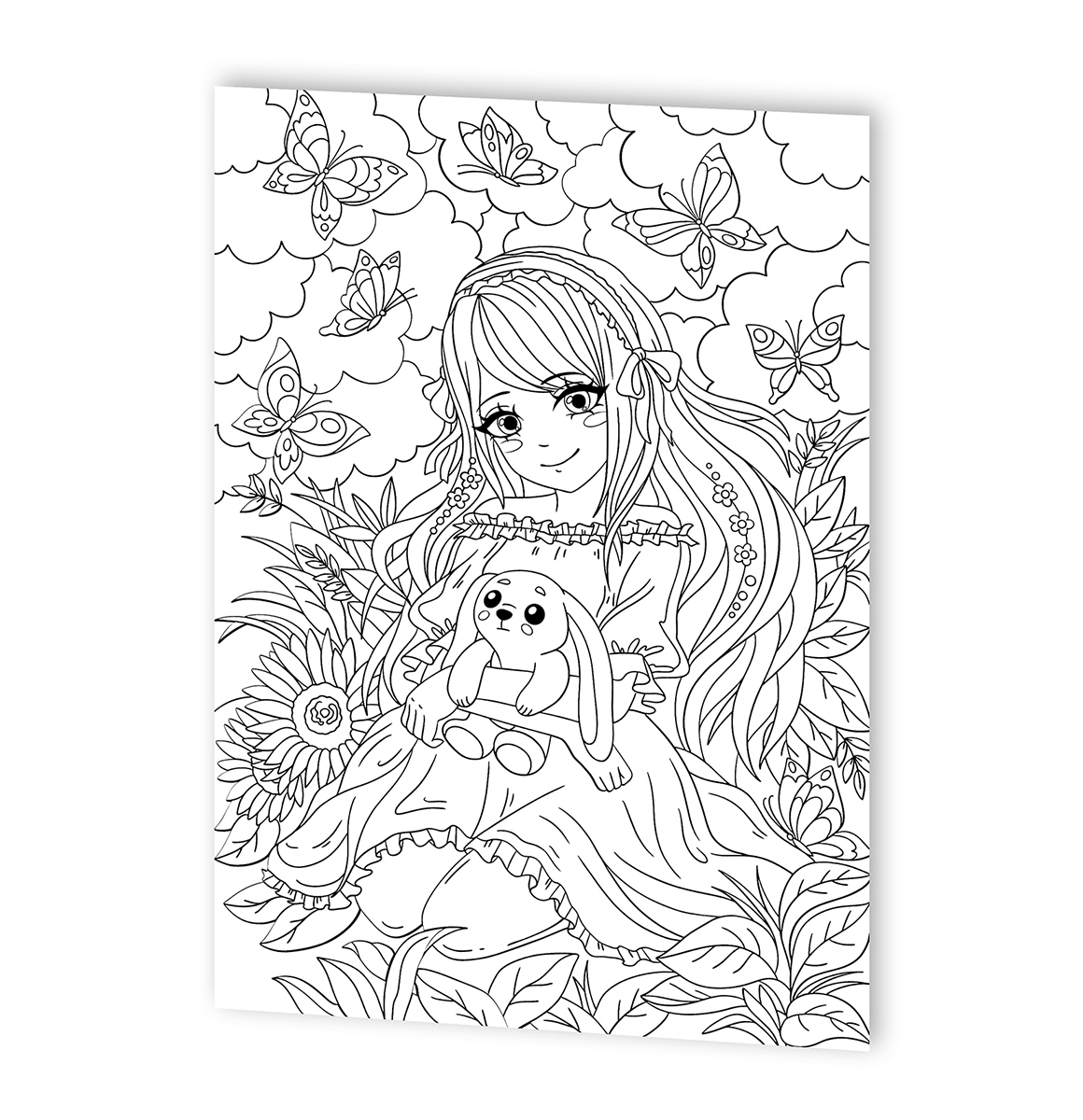 Раскраска для детей «Девочка с зайкой» в стиле Anime
