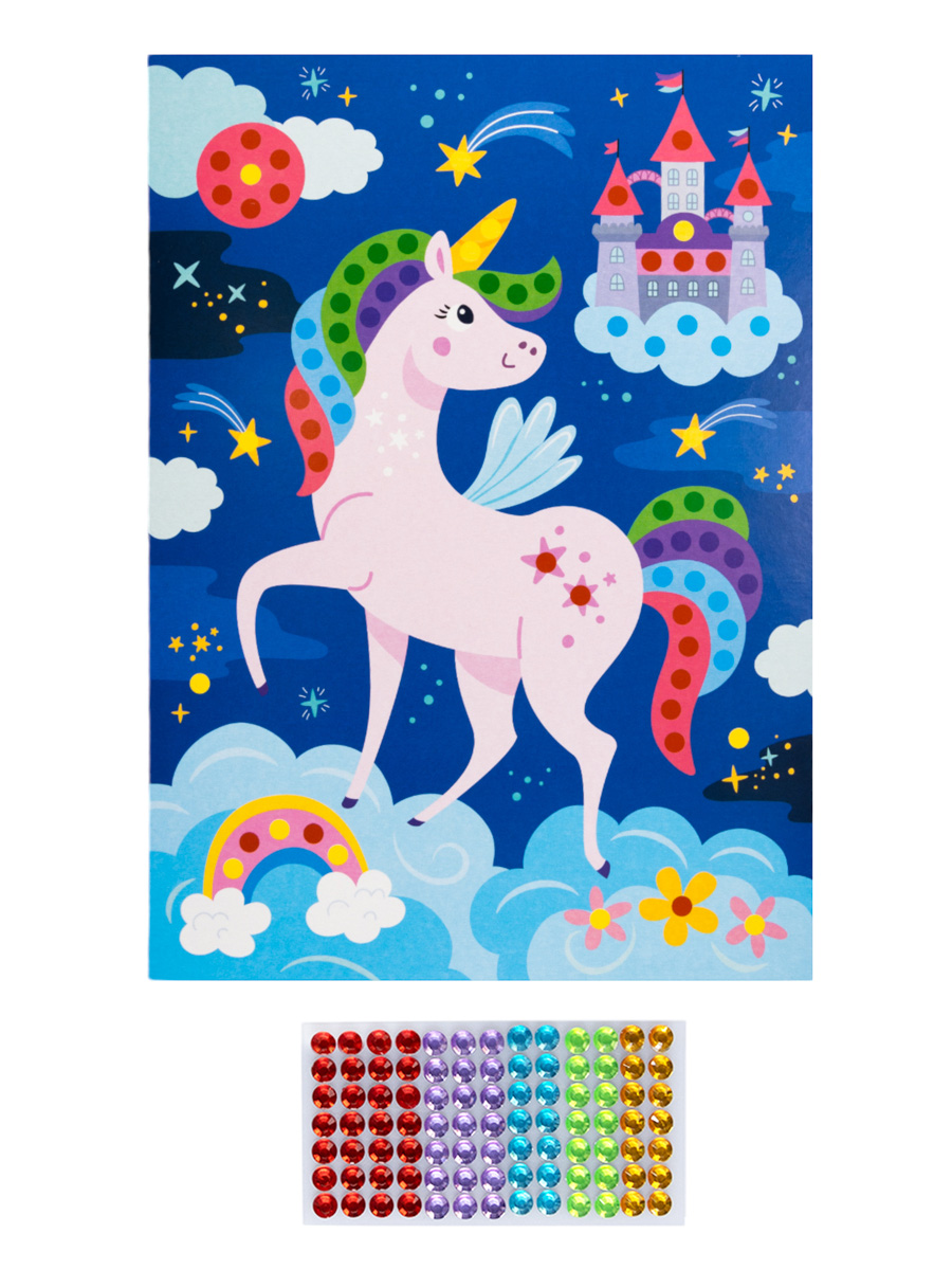 Рисунок из страз «Единорог» (европодвес) с изображением сказочного Единорога позволит Вашему ребенку с удовольствием и пользой провести время.Украсив картинку яркими разноцветными стразами, вы создадите оригинальную открытку для друзей и близких.