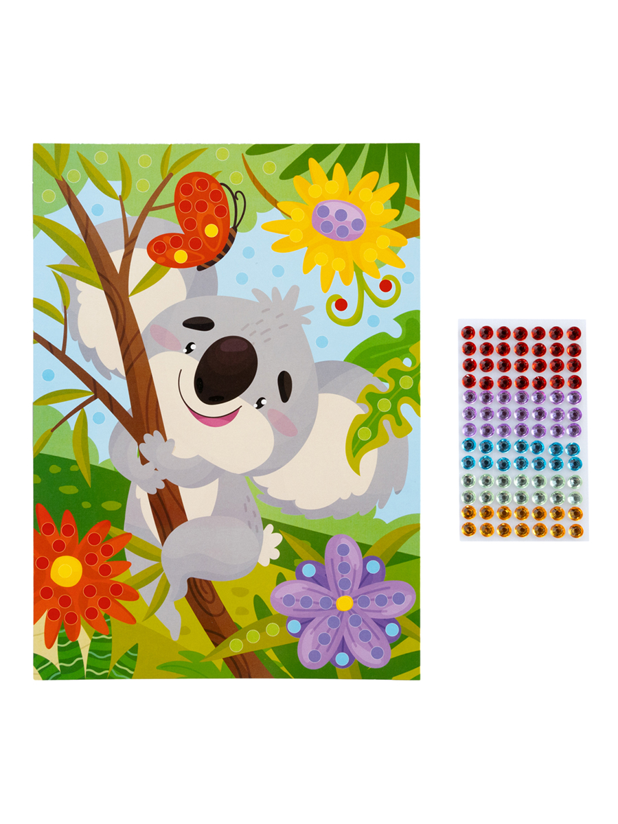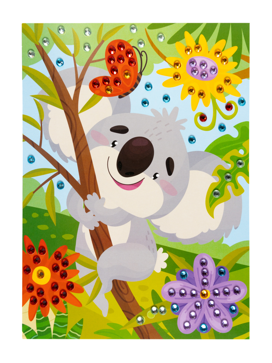 Рисунок из страз «Коала» с изображением милого животного позволит Вашему ребенку с удовольствием и пользой провести время.Украсив рисунок яркими разноцветными стразами, ребенок сделает оригинальную сияющую картину, которая несомненно украсит интерьер детской комнаты.